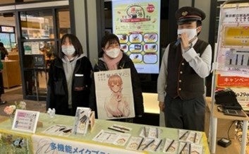 2021年11月、2022年1月には東京都立第五商業校等学校の生徒が開発した多機能メイクブラシを「もののわ」で販売し、「リアルな販路がない」という学校の悩みを解決する一助となったことに加え、販売期間中は改札付近で生徒自身による販売も行い、商品の魅力や想いをお客さまに直接伝える場となりました。
