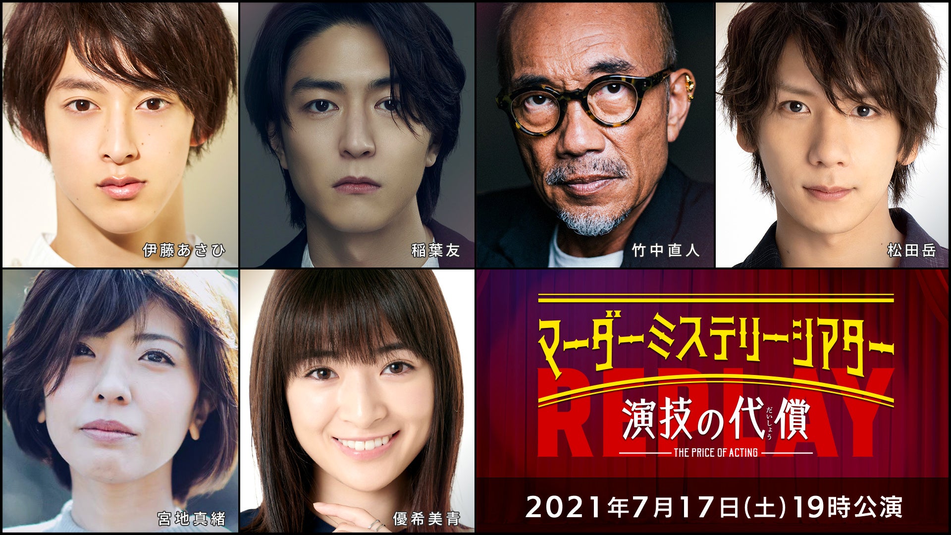 今年7月17~19日にオンラインで配信された舞台「マーダーミステリーシアター 演技の代償」Replayの全6公演を、CS衛星劇場で、来年1月から3月にかけて連続放送決定!