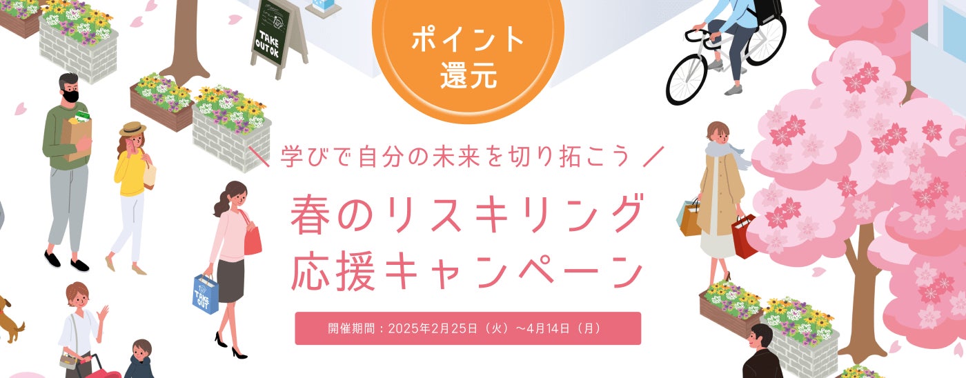 ストアカでは2025年2月25日(火)より、「春のリスキリング応援キャンペーン」を開始しました。ストアカに登録の方全員に、ストアカ内で使用できる、クーポンをプレゼントしています。さらに、キャンペーンエントリー後に講座・サービスを体験した方を対象に最大1000円分のポイントを還元いたします。 ビジネスシーンやリスキリングで役立つカテゴリーの講座・サービスが対象です。