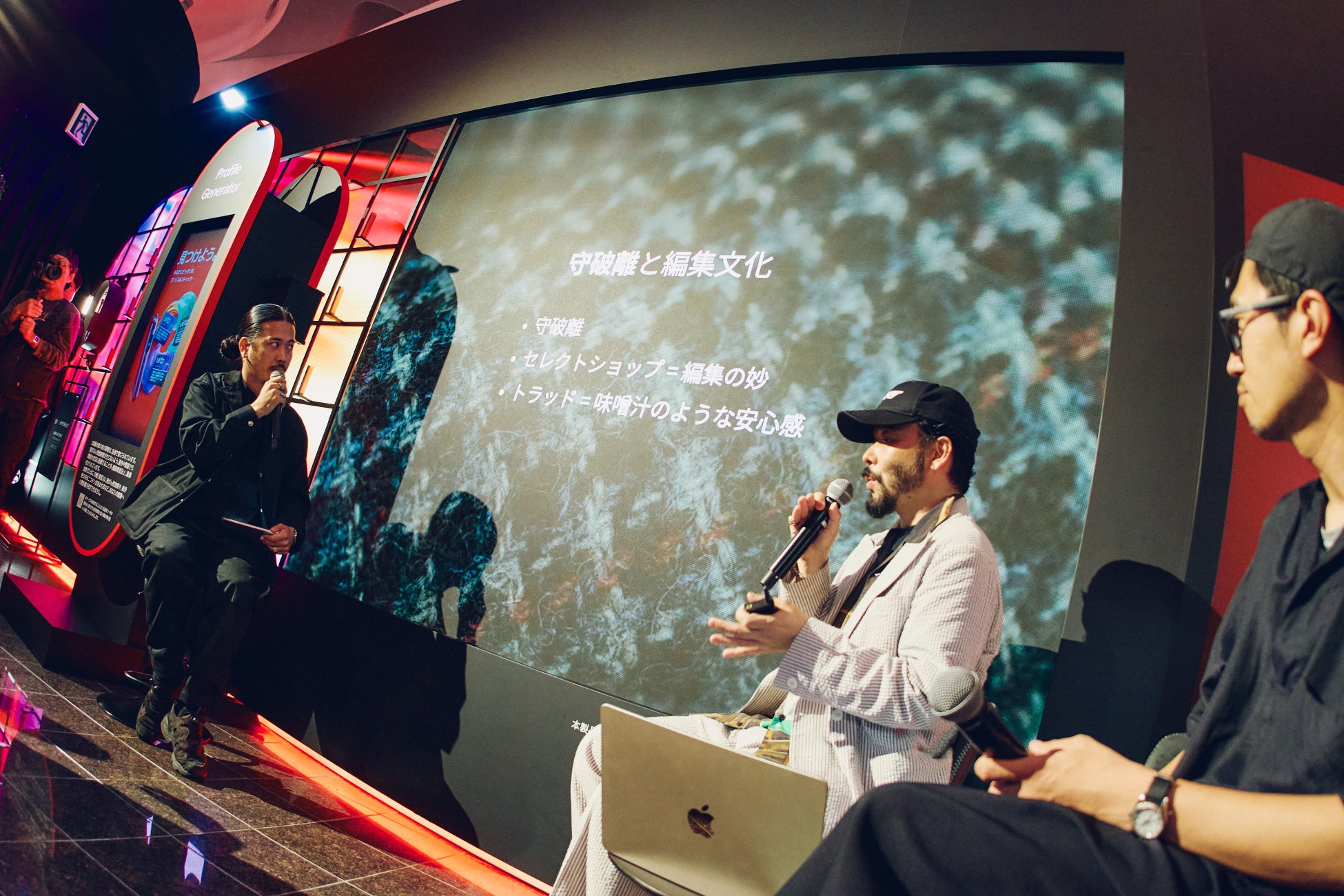 ポップアップがほのかな熱気に包まれ始めた頃、この日のメインコンテンツである「LOVE AT FIRST STYLE」ワークショップがスタート。会場に拍手が広がるなか、MCの呼び込みとともに登場したのは、ファッションキュレーターの小木 “POGGY” 基史氏。観客の視線が一斉にステージへと集まりました。