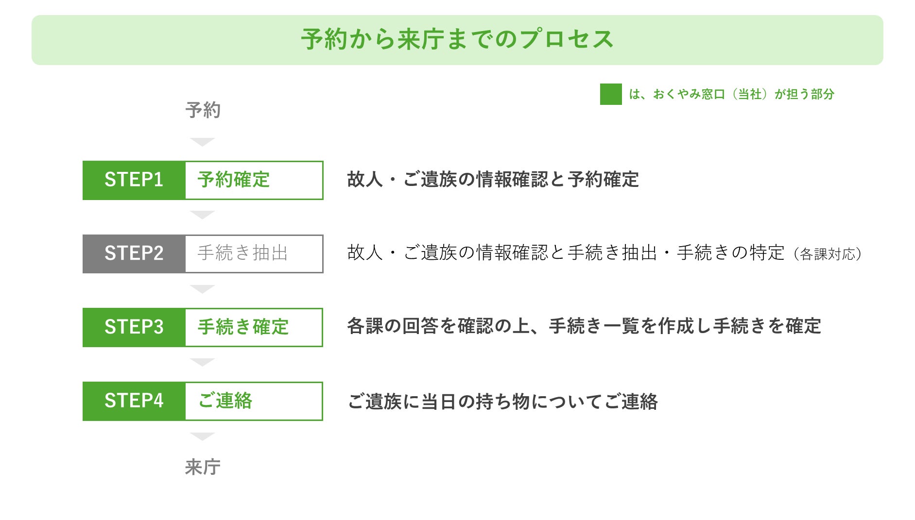 遺族のヒアリングを通して必要な手続を抽出し、スムーズに手続きできるようご案内します。