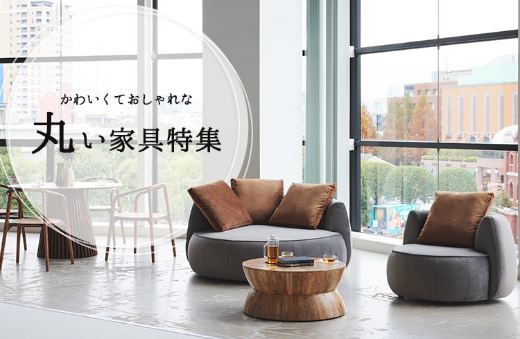 ファニーでありながらも、スタイリッシュでモダンな雰囲気も持つ、丸い家具。丸い形は、「かわいい」「優しい」「柔らかい」「安心」というイメージを与えます。直線的なもの(窓や階段、扉、大型家電等)が多い家の中で、1つでも丸い家具を取り入れると雰囲気が柔らかくなり、癒されるお部屋になります。