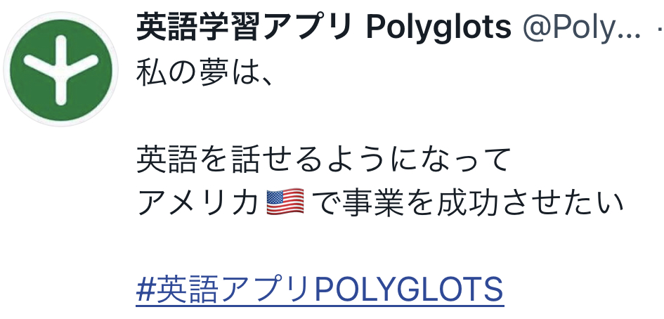 ③ ハッシュタグ「#英語アプリPOLYGLOTS」を入れてアナタの夢を