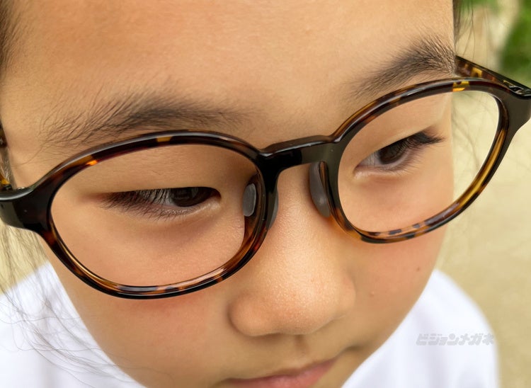 子ども用眼鏡としての使いやすさを向上させるため、面積の広い鼻パッドを採用しています。広い面で眼鏡を支えることで、成長段階で鼻が低い子どもでもしっかりフィットし、ずれにくさを実現しています。柔らかいラバー素材を使った鼻パッドなので、鼻への負担を軽減します。