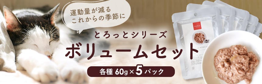 プレミアムキャットフード専門店・通販「たまのおねだり(tama)」(運営:マーケティングパートナー株式会社、本社所在地:東京都新宿区、代表取締役社長:権田真司、Tel:03-6772-8194)は、運動量が低下する冬場の体重管理と水分補給におすすめの猫用ウェットフード(栄養補完食)として、人気の『とろっとシリーズ』が5袋セットになったお得なボリュームセットを11月11日(金)より販売開始しました。(数量限定品のため、リリース時に完売している場合があります。ご注意ください。)