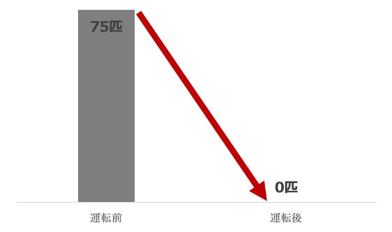 3)80分間運転後に配置した袋を回収し、トコジラミの致死状況を観察。