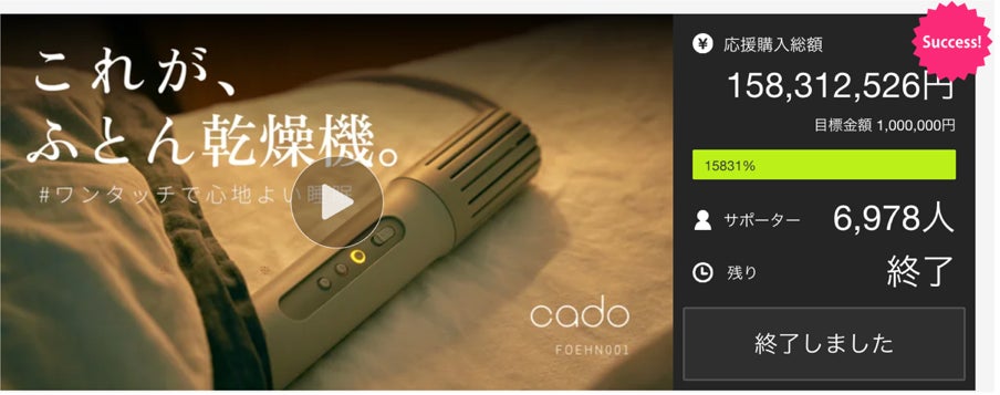 2023年9月17日~11月5日に先行販売をおこなった応援購入サービス「Makuake(マクアケ)」では、購入総額1億5800万円超、延べ6,978名のサポーター様よりご支援いただきました。