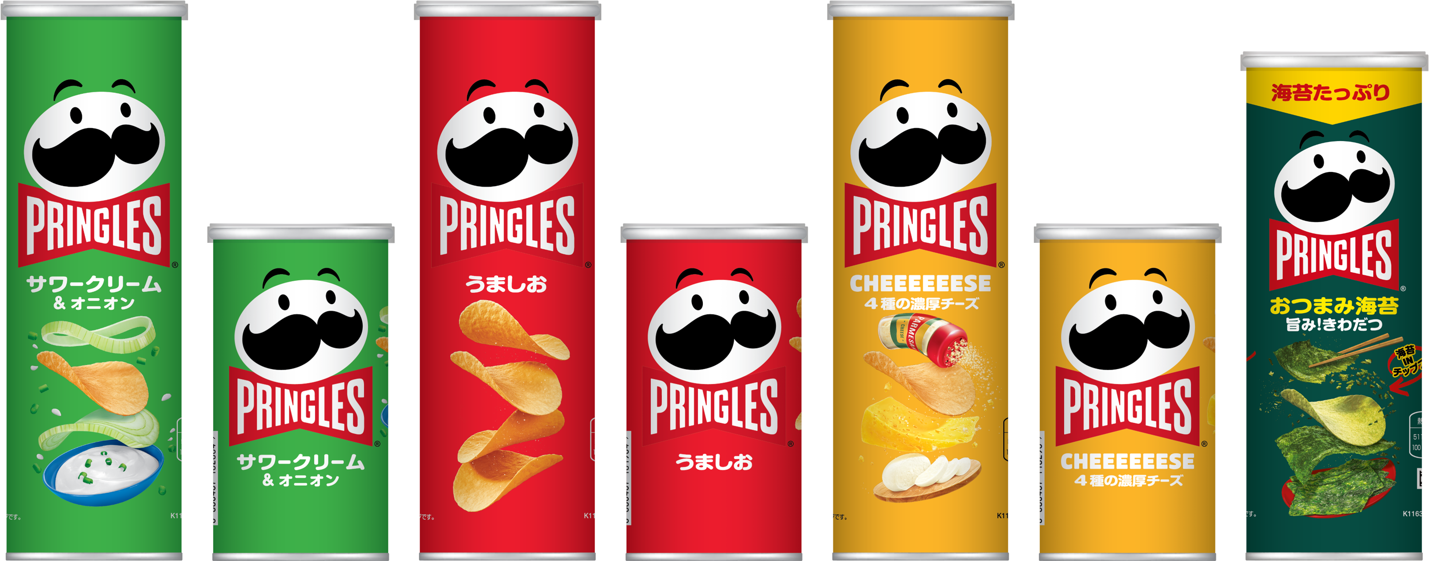 プリングルズは世界140カ国以上で販売されているポテトチップスの代表ブランドで、日本では1994年から販売が始まりました。大きなひげがトレードマークのMr.Pは、1968年にアメリカでプリングルズが発売されて以来、プリングルズのキャラクターとして親しまれています。他のポテトチップスでは味わえない、プリングルズ特有のしっかりとした味わいが特長。2020年9月からは、「サワークリーム&オニオン」、「うましお」に加え「CHEEEEEESE」を定番フレーバーとして追加し、2021年8月には20年ぶりにロゴを刷新しました。 「何気ない日常に 心弾む瞬間を!」お届けするブランドとして、様々な期間限定品や地域限定品を展開し、マーケットと店頭を活性化しています。
