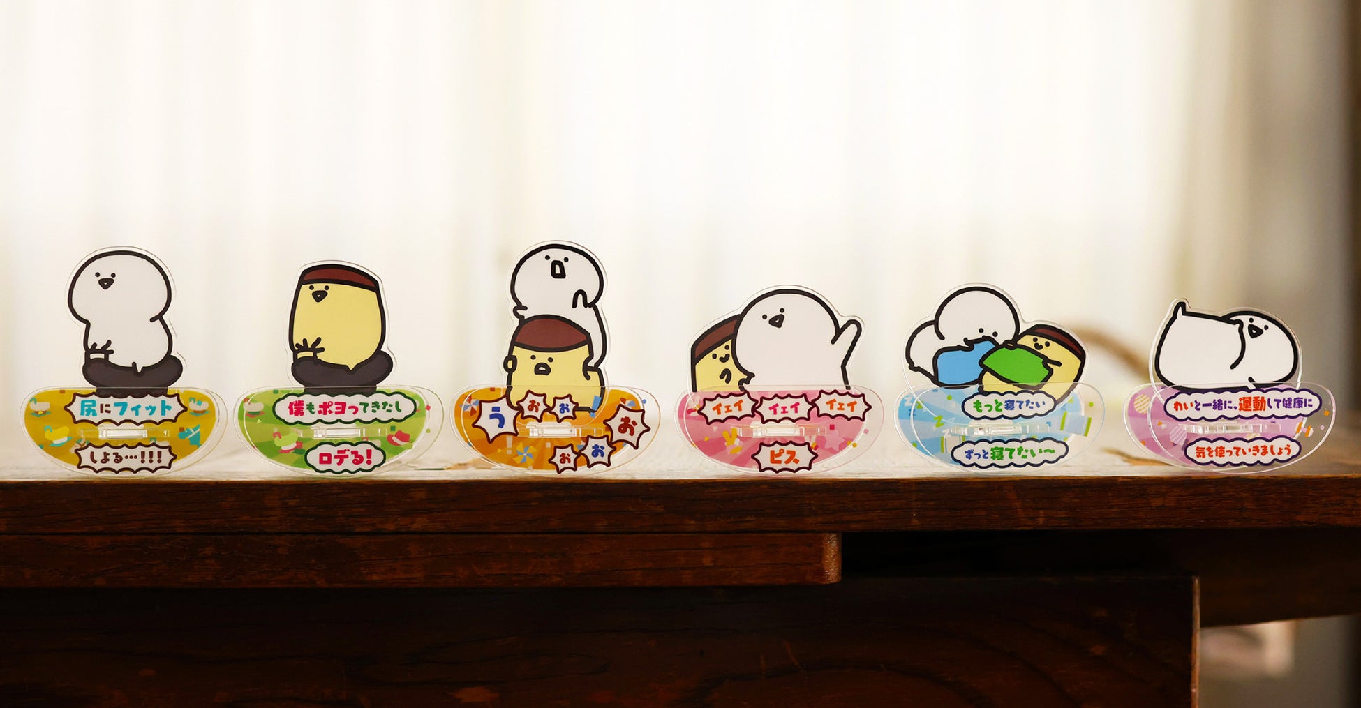新たな展開グッズはシールや消しゴムなどの文具類や、ミラーやヘアクリップ、トートバッグ、ガーゼミニタオルなどの雑貨類です。