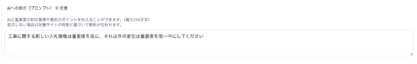 AIに細かく指示を行える「プロンプト機能」も搭載しました。ユーザーが任意のプロンプト(指示文)を記述することで、AIがそのプロンプト(指示文)を元に優先度付けや要約を行うので、必要な情報を高精度に検知することが可能になります。