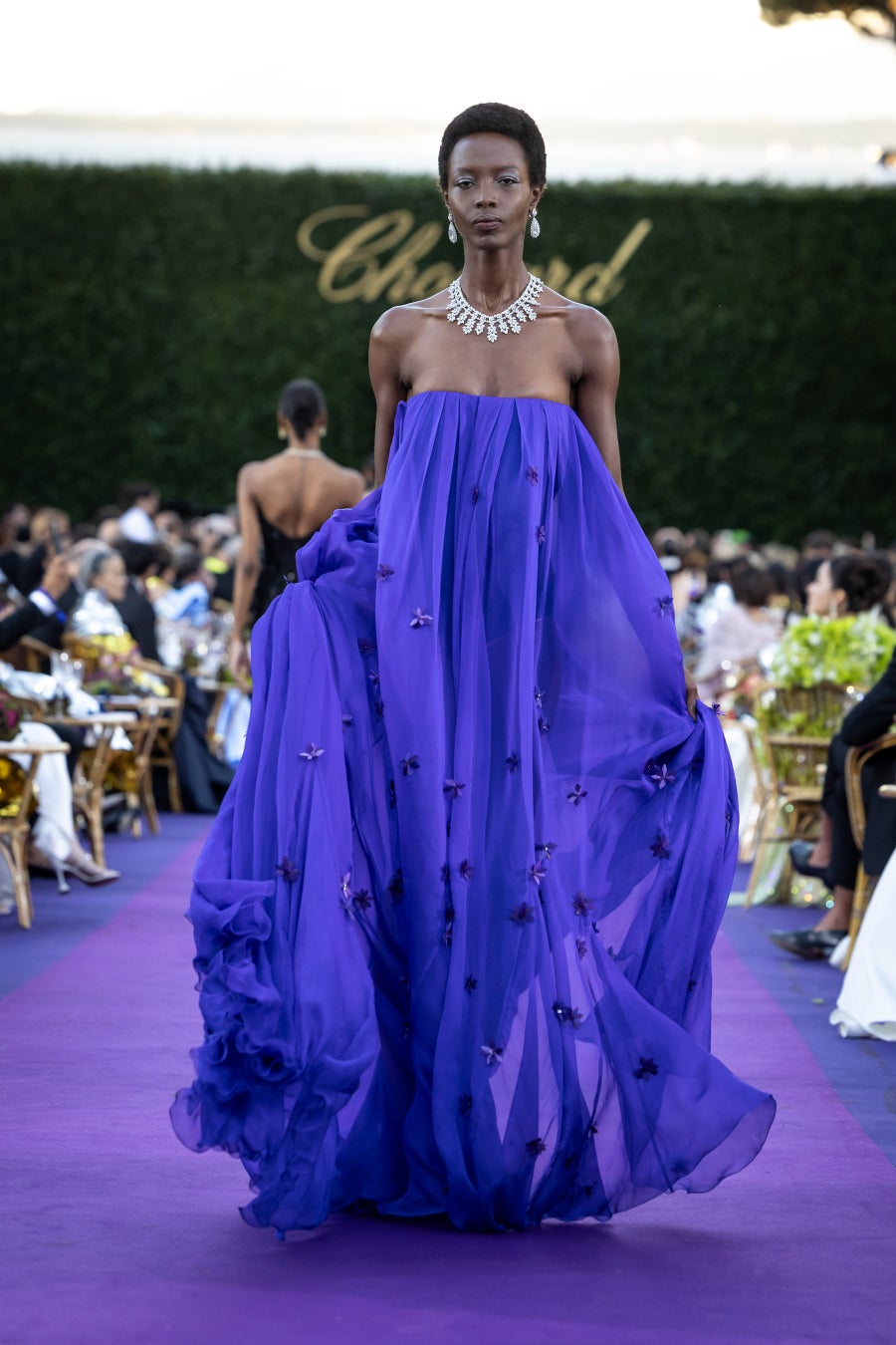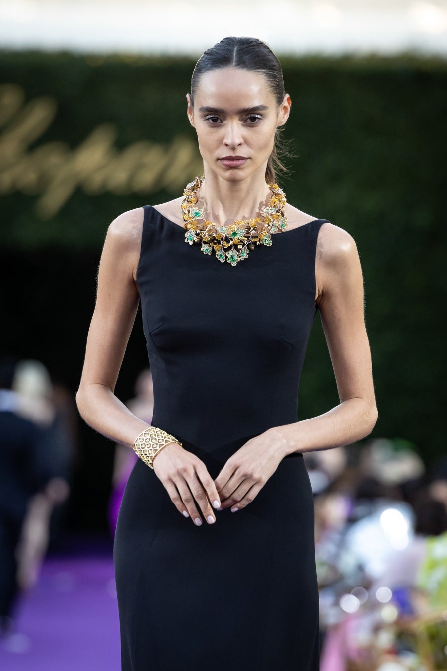 映画祭のマジカルな雰囲気に満たされたカンヌで、ショパールが主催する毎年恒例のグラン・ソワレが開催されました。メゾンの共同社長兼アーティスティック・ディレクターを務めるキャロライン・ショイフレは、アンティーブ岬にあるオテル・デュ・キャップ・エデン・ロックを今年の会場に選びました。このゴージャスなロケーションで、自身がデザインを手がけたハイジュエリー「レッド カーペット コレクション」と、昨年に引き続き2回目となる「Caroline’s Couture」のクチュールコレクションが披露されました。