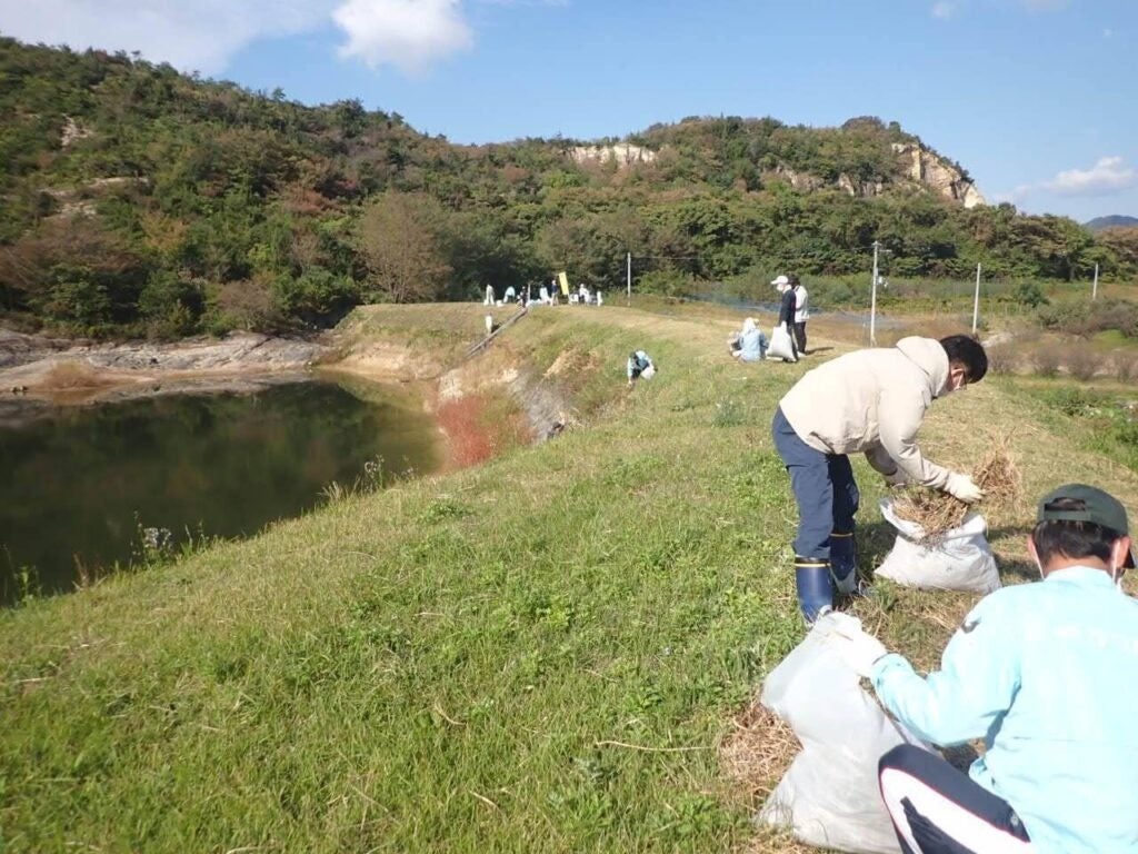 また、10月22日には、青池クリーンキャンペーンを開催し、地元の方を中心に、ため池の周りを中心とした清掃活動を実施。清掃活動にあわせ高砂市治水対策課によるため池教室(ため池の多面的機能の話など)も開催しました。