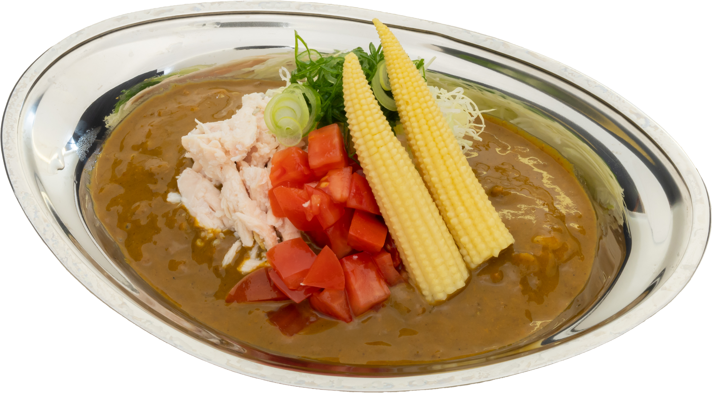 冷たいカレーに合わせるのは、酢飯。チャンカレの濃厚なカレーをかけると「酢飯だったの?」と思う方もいるかもしれませんが、この「冷やしカレー」の土台をしっかりと支えてくれています。また、トッピングには、ダイスカットトマト、蒸し鶏、ヤングコーン、ネギを使用しました。酸味や食感のアクセントで食欲がない暑い日でも飽きずに食べ進められるようになっています。