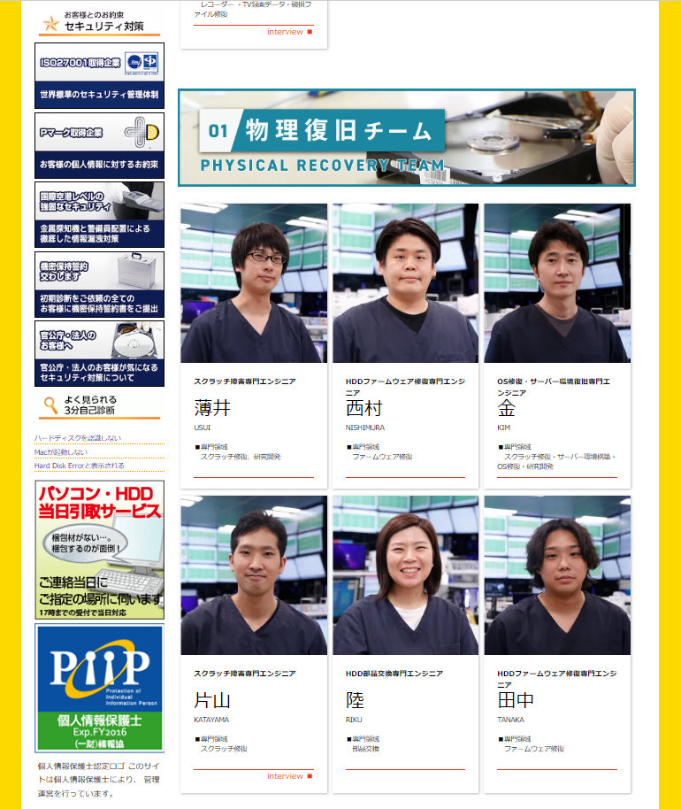 データ復旧サービス「デジタルデータリカバリー(DDR)」のホームページにてエンジニア紹介ページが公開されました