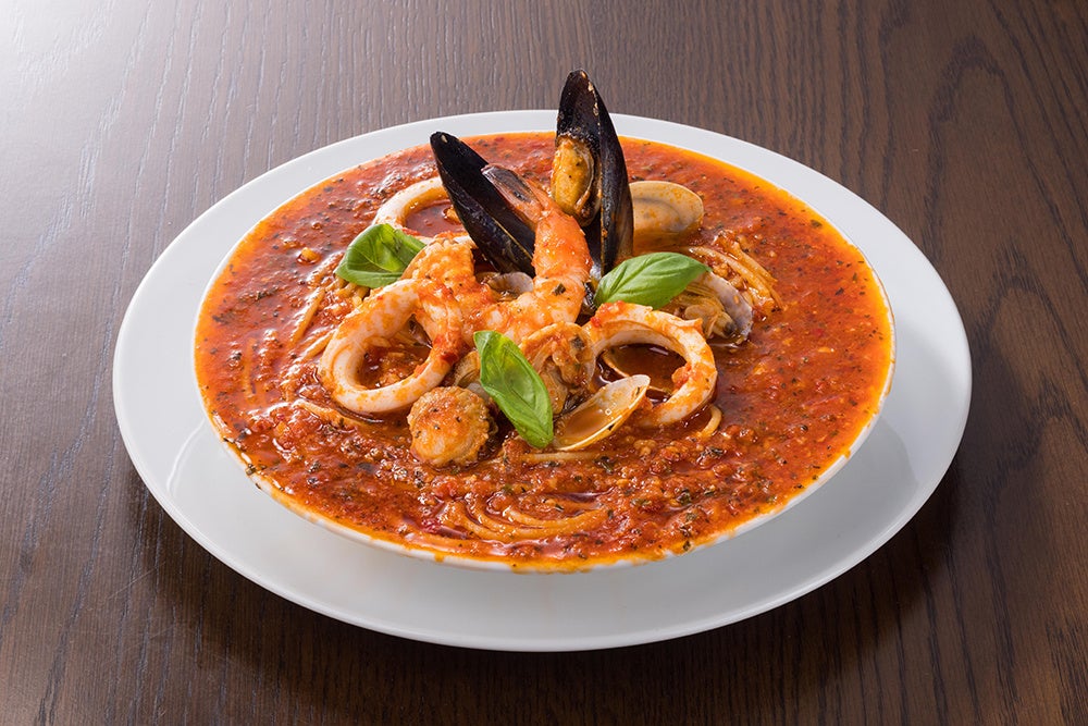 海の恵みをふんだんに盛り込んだ、ちょっと贅沢なトマトスープスパゲッティ。