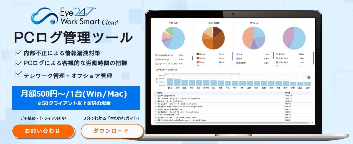PCログ管理ツール「Eye“247” Work Smart Cloud」に勤怠時間と実働時間の乖離を可視化する労務管理支援機能が追加