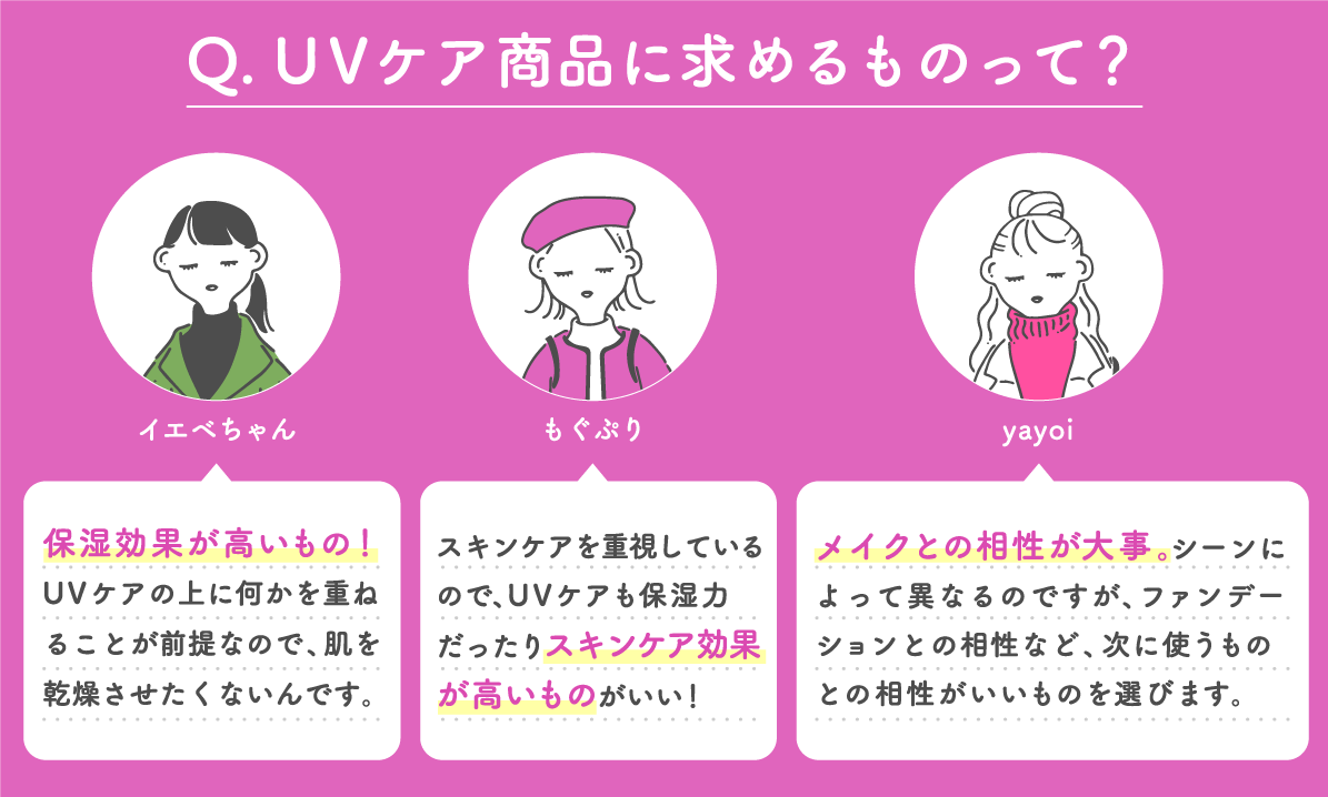 では、ユーザーたちは数あるUVケアアイテムからどうやって商品を選び、使い分けているのか、座談会を通じて深掘りしていきます。