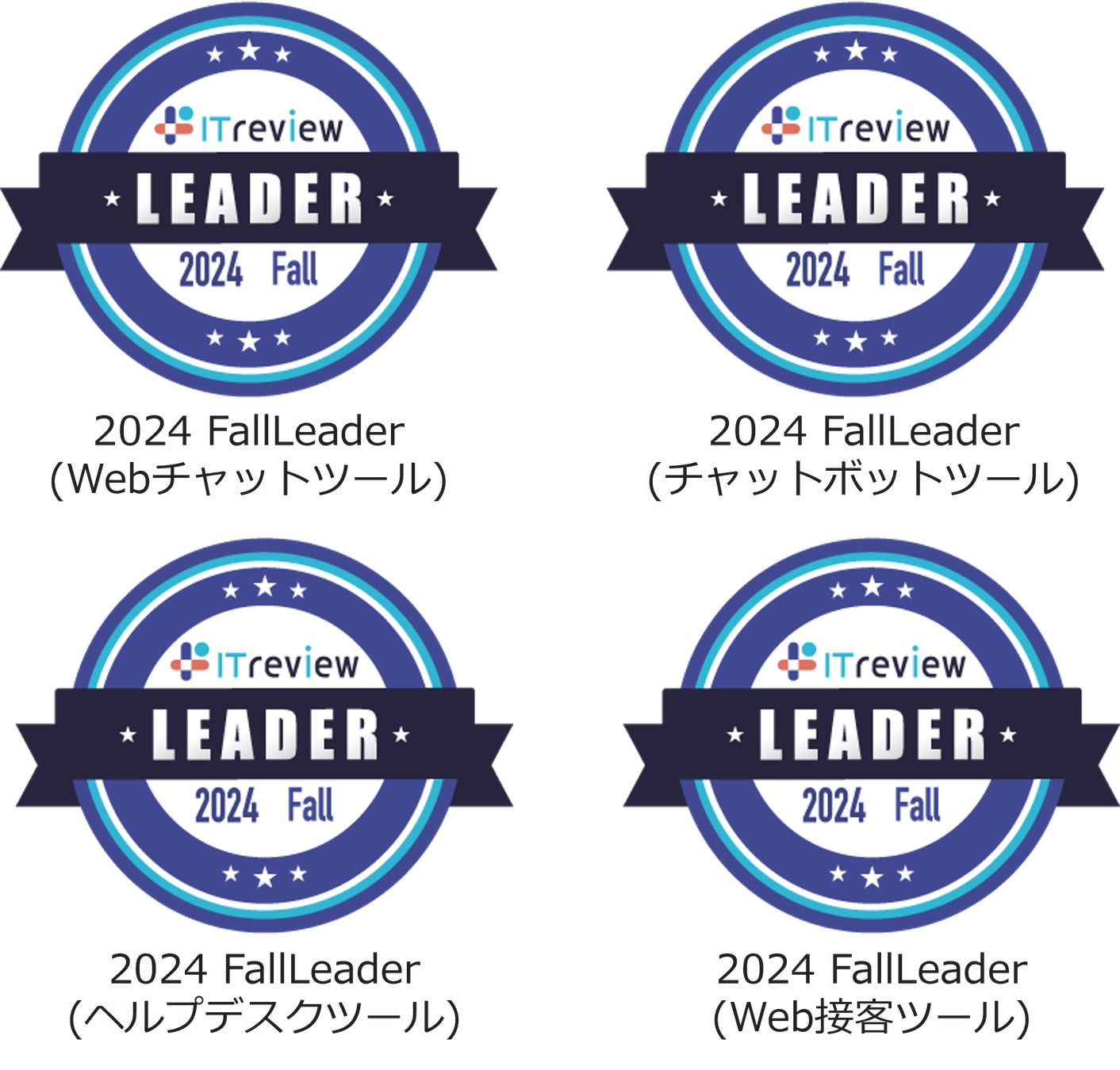 「Webチャットツール」、「Web接客ツール」、「チャットボットツール」、「ヘルプデスクツール」で21期連続のLeaderを受賞