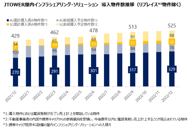 JTOWERの屋内インフラシェアリング・ソリューション 2022年12月時点の導入済物件数は全国で374件