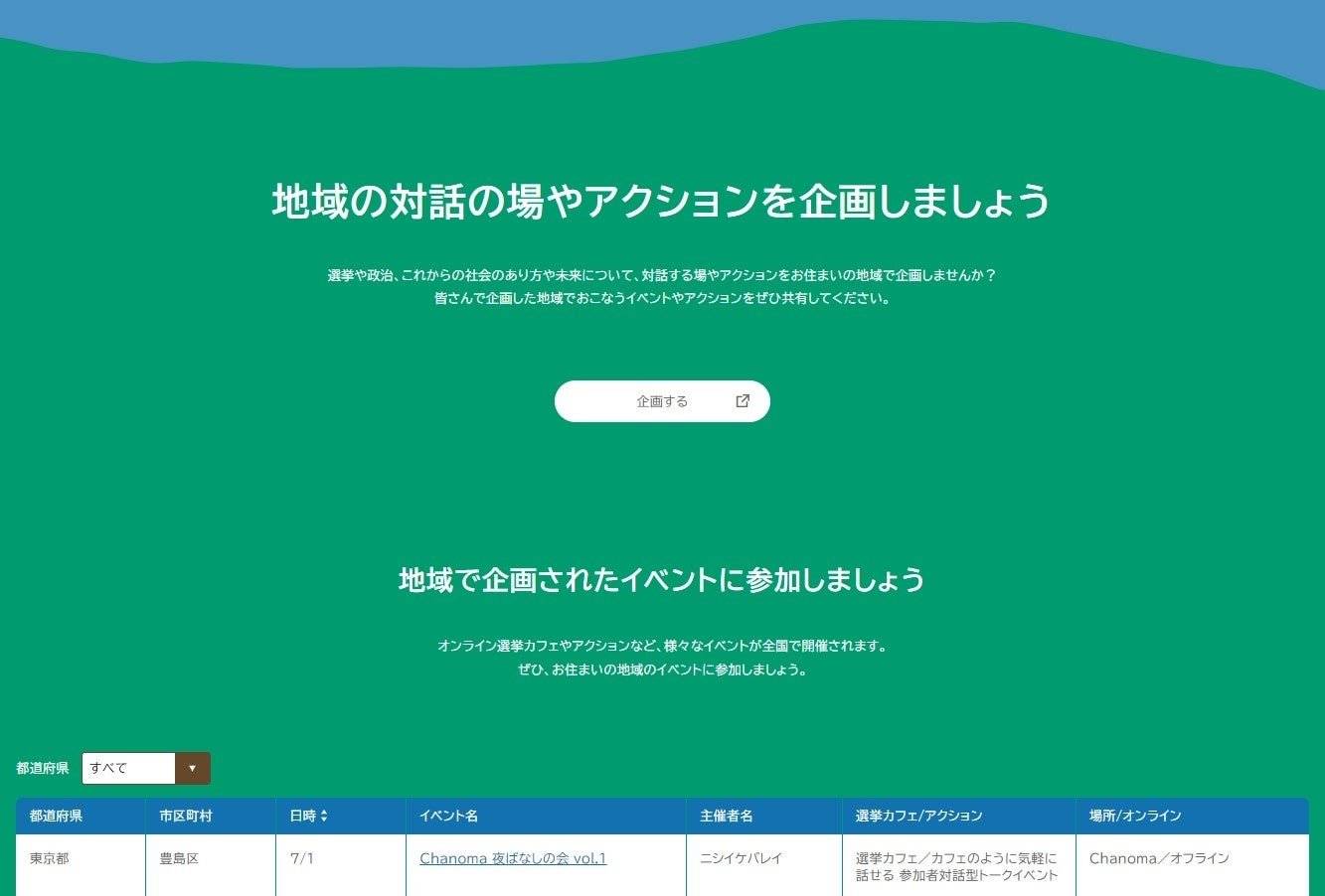 ●今回は新たに各地域で対話の場やアクションを企画を促すプラットフォームをVOTE OUR PLANET特設サイト内に設置します。
