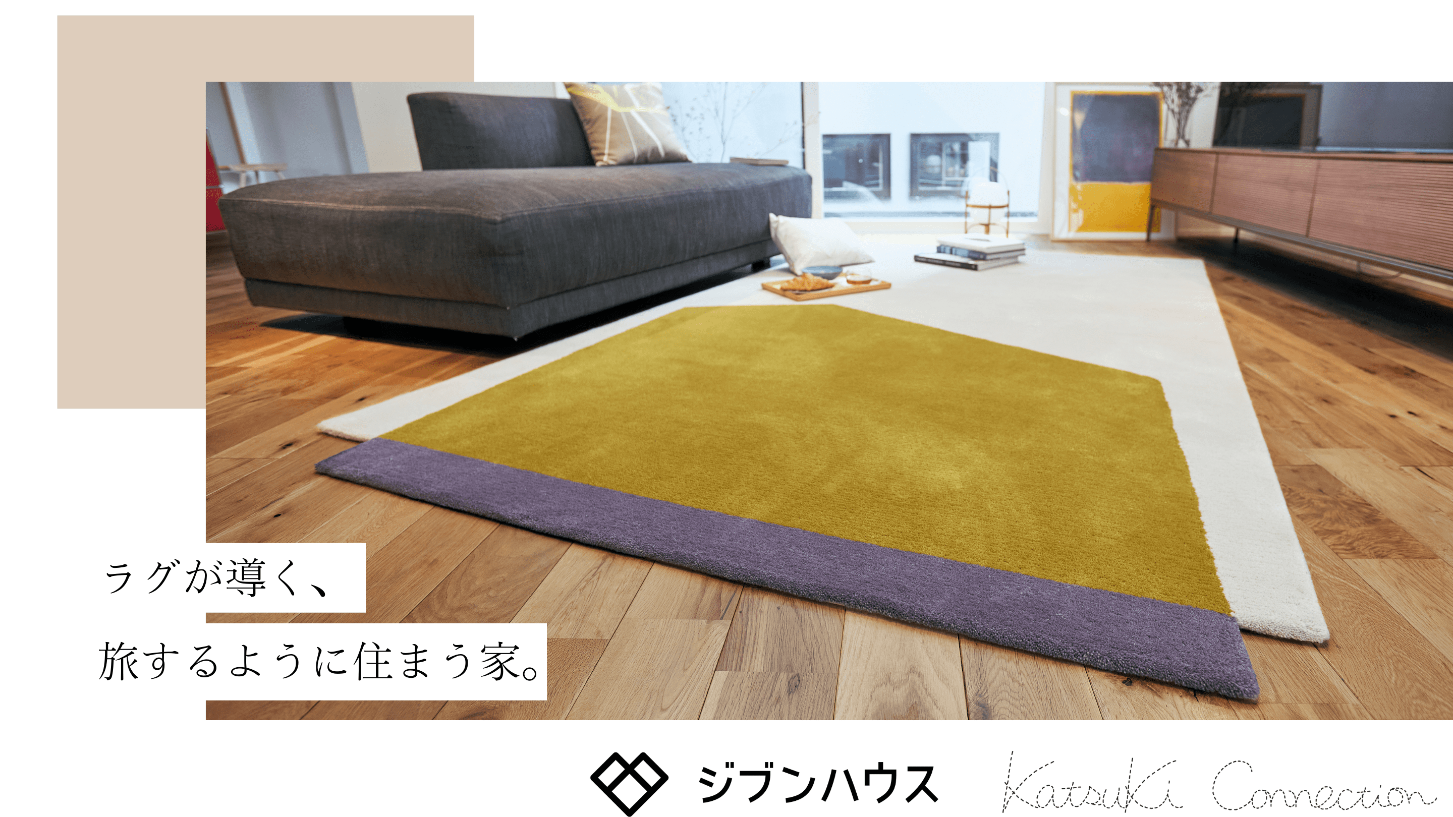 テキスタイルデザイナーの香月裕子さんが代表を務めるKatsuki Connectionは、幸せとは、目的地にたどり着くまでの感動やプロセスにあると考えます。その思想が、家は買って終わりではなく、「家づくり」を通じて、自分自身の理想の暮らしを見つけたり、家族と向き合うその過程こそが大切だと考えているジブンハウスと共鳴し、協業を開始しました。「旅するように暮らす」空間を生み出すラグは、ジブンハウスの加盟工務店にて購入できるようになりました。