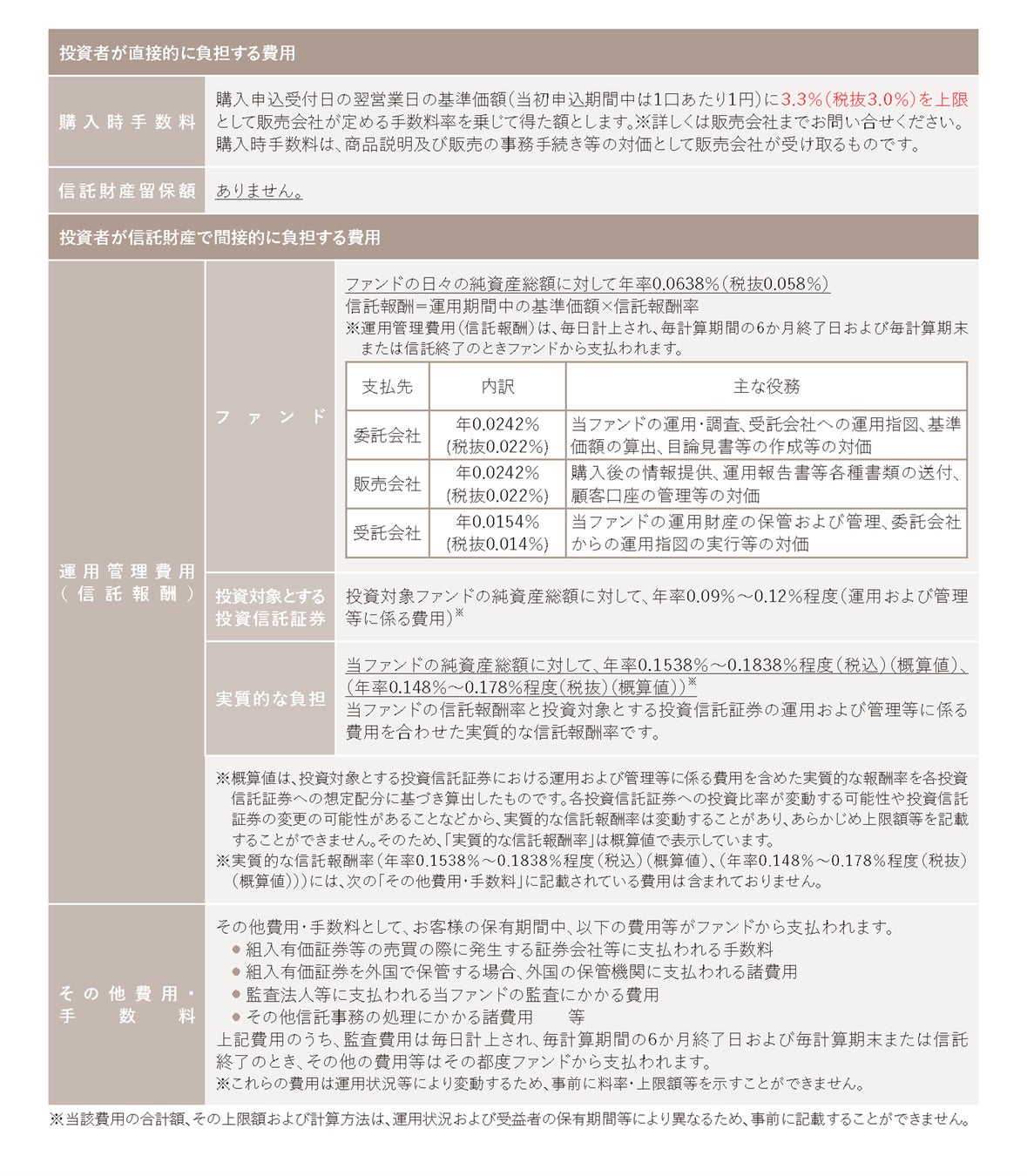 ※ 詳しくは投資信託説明書(交付目論見書)の「ファンドの費用・税金」をご覧ください。