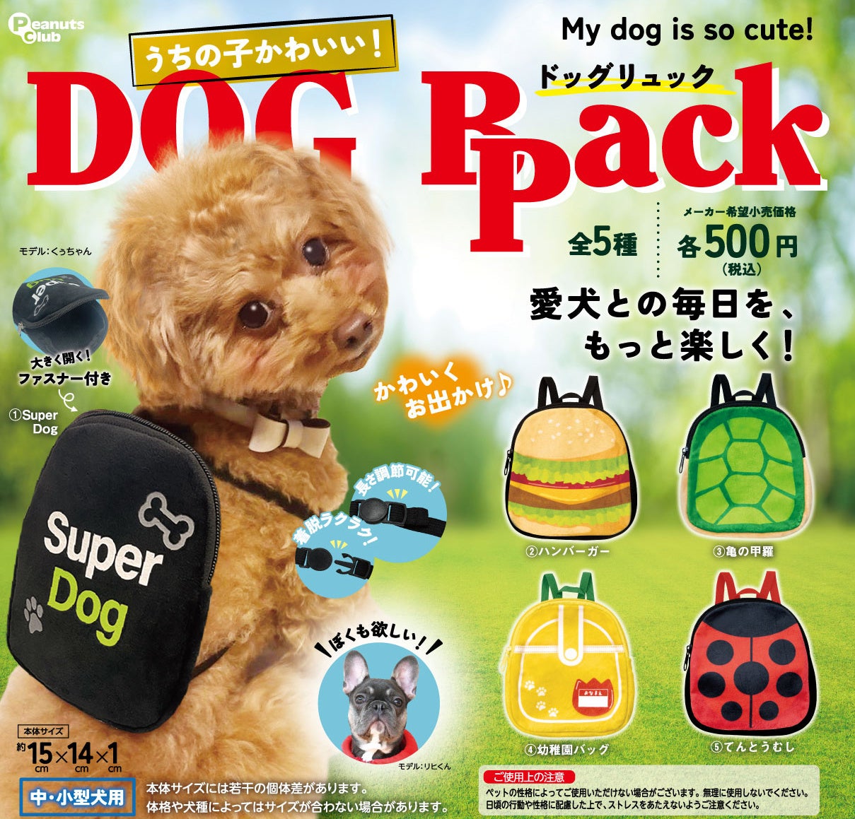 うちの子かわいい!ドッグリュック(全5種・メーカー希望小売価格 各500円)