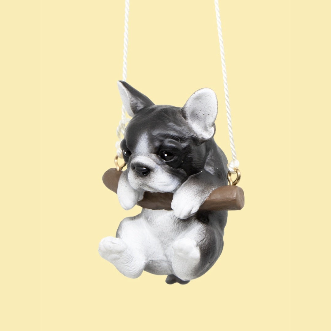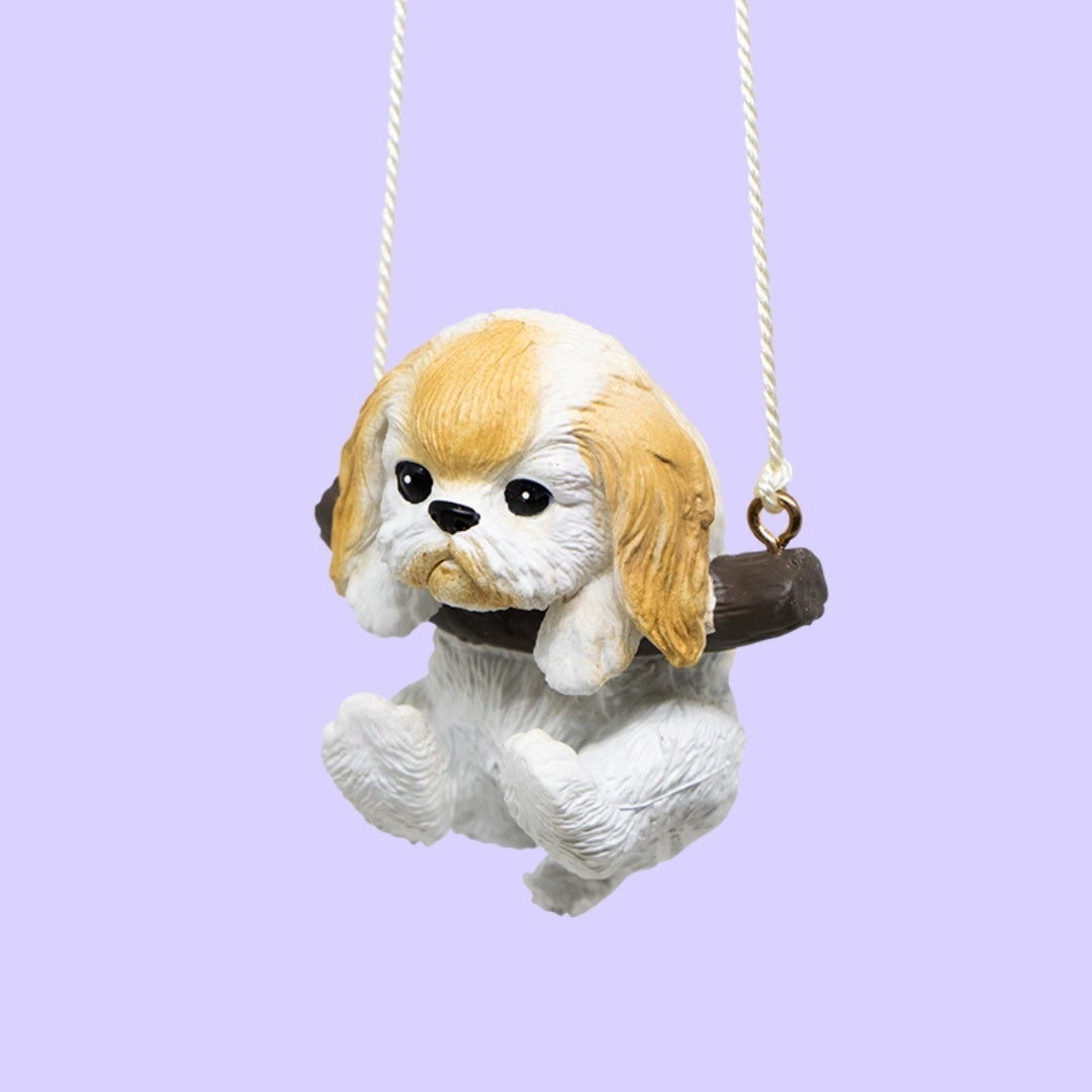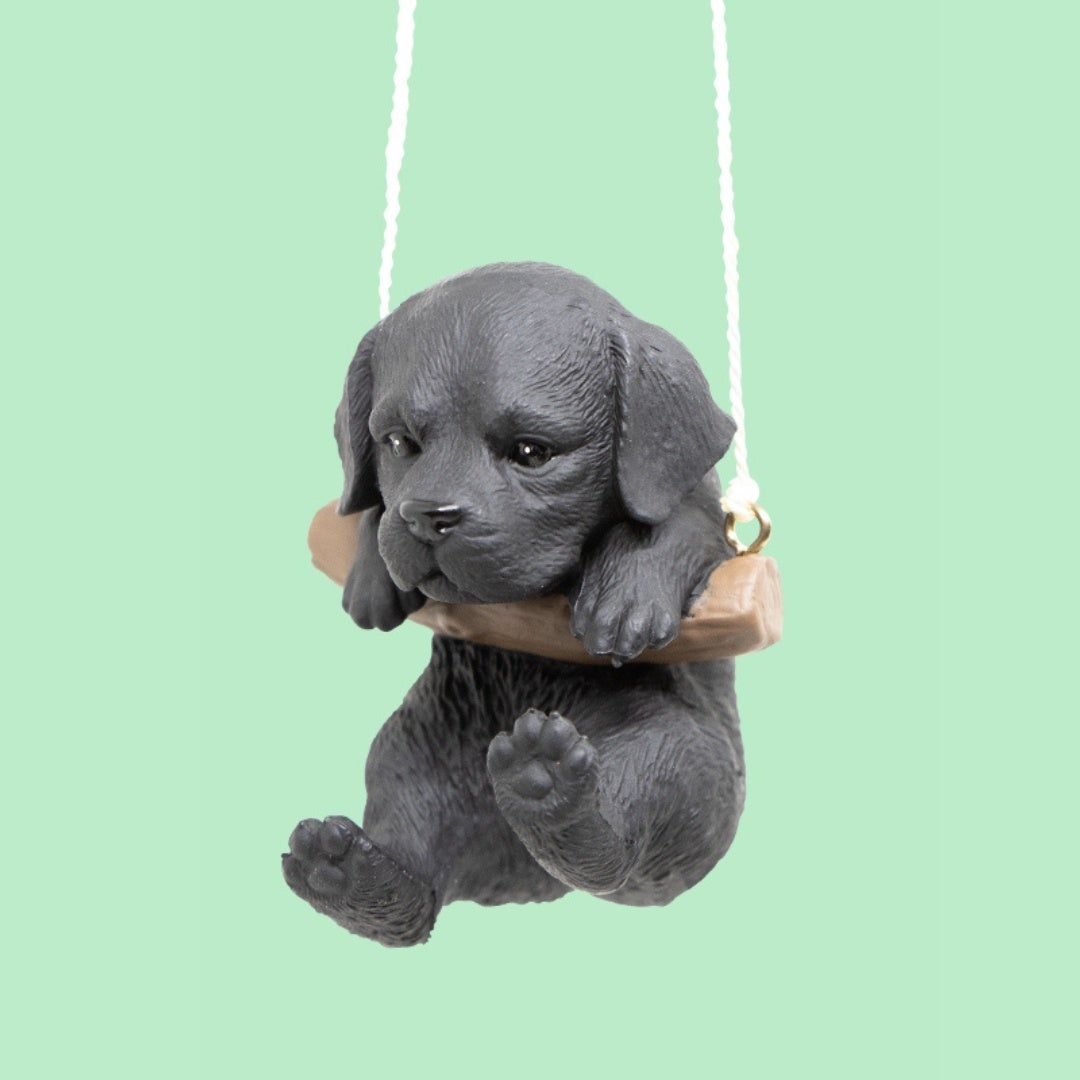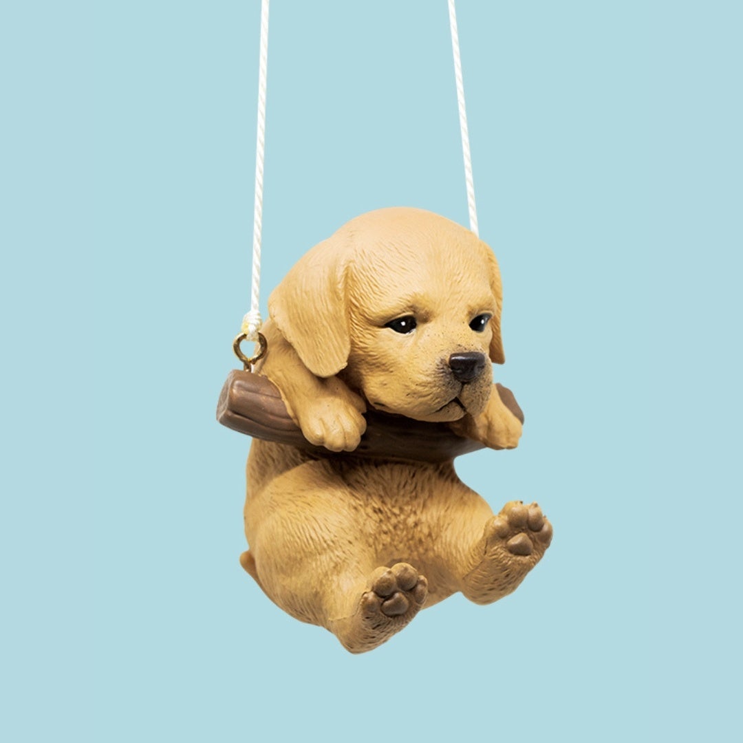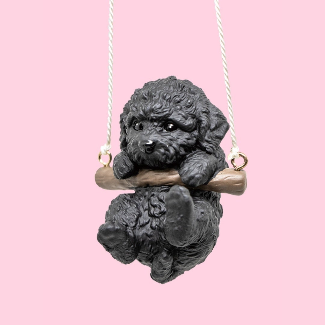 ブランコにのっかってゆらゆら揺れるかわいいワンコのフィギュア。