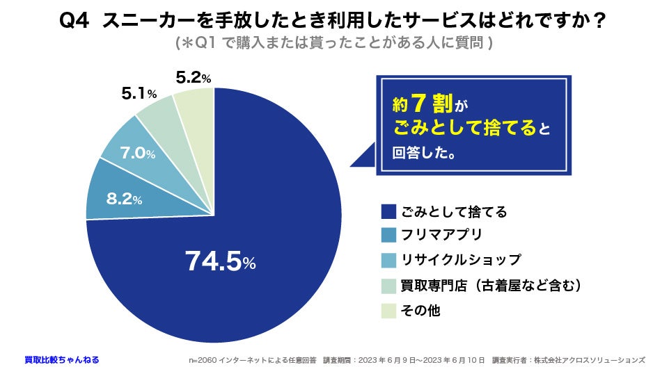 Q3では、過半数の人が状態が悪くなるときまでスニーカーを手放さないとの結果が出ているので、最終的にごみとして捨てるというのも納得の結果です。