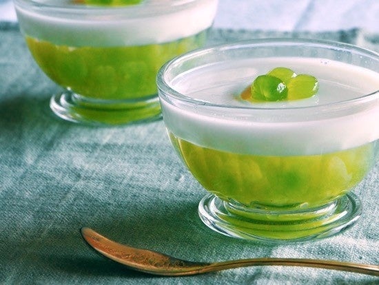 ぶどうを水にさらすことで色が綺麗に仕上がり、ゼリーの透明度が増したように感じます