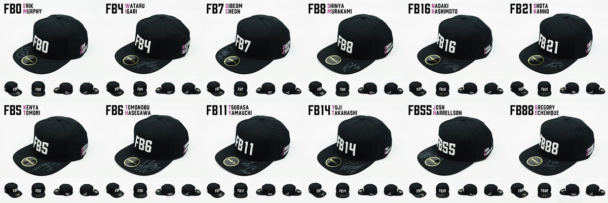 | エリック・マーフィー選手/猪狩 渉選手/友利 健哉選手/長谷川 智伸選手/チョン ギボム選手/村上 慎也選手/山内 翼選手/髙橋 祐二選手/橋本 尚明選手/菅野 翔太選手/ジョシュ・ハレルソン選手/グレゴリー・エチェニケ選手 以上12名のデザインのキャップを制作 ※背番号順 |
