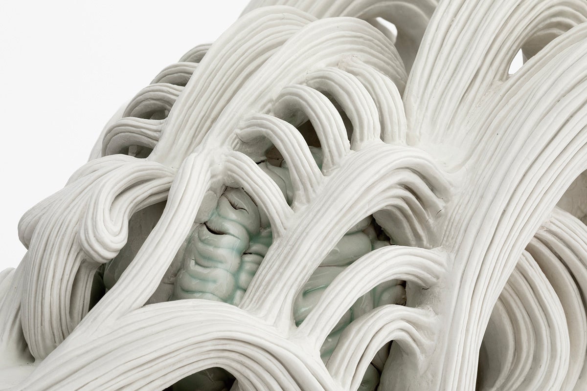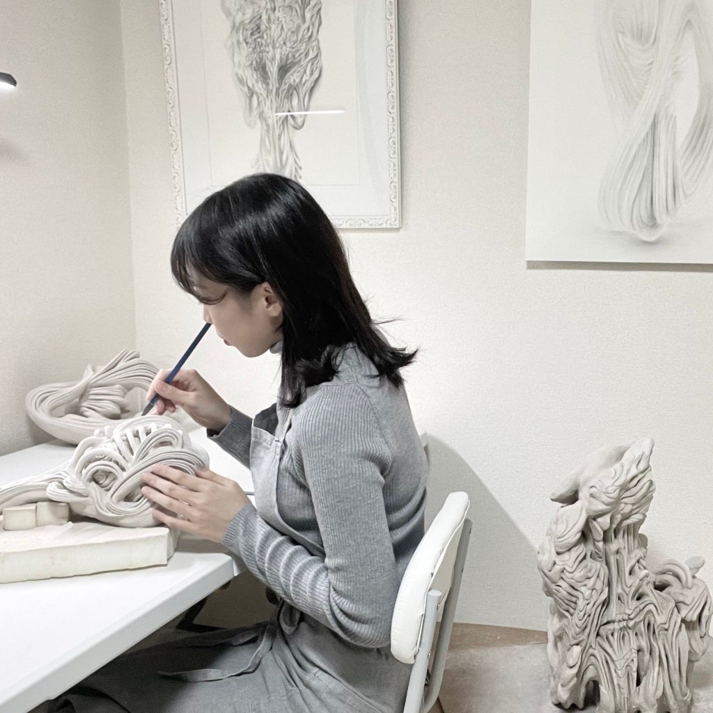 1998年長崎生まれ。主に陶磁器の素材を用いて、感覚の可視化を試みる。微細な現象も取りこぼしなく露にできるやきもの。自身と素材を対峙させ、曖昧で移ろう感覚を、不変な「カタマリ」として現実に落とし込む。