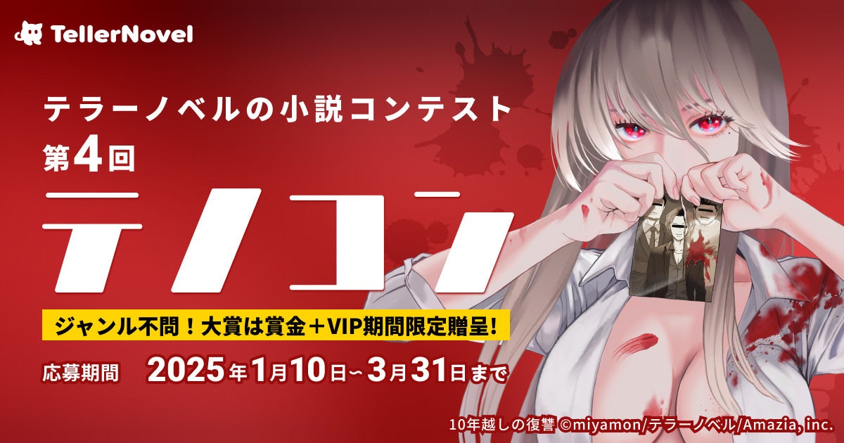 株式会社テラーノベル(本社:東京都港区、代表取締役社長:蜂谷宣人、以下テラーノベル)は、同社が運営する累計DL数760万※突破の小説共有プラットフォーム「テラーノベル」( https://teller.jp/ )にて、2025年1月10日から2025年3月31日まで『第4回テノコン』を開催いたします。