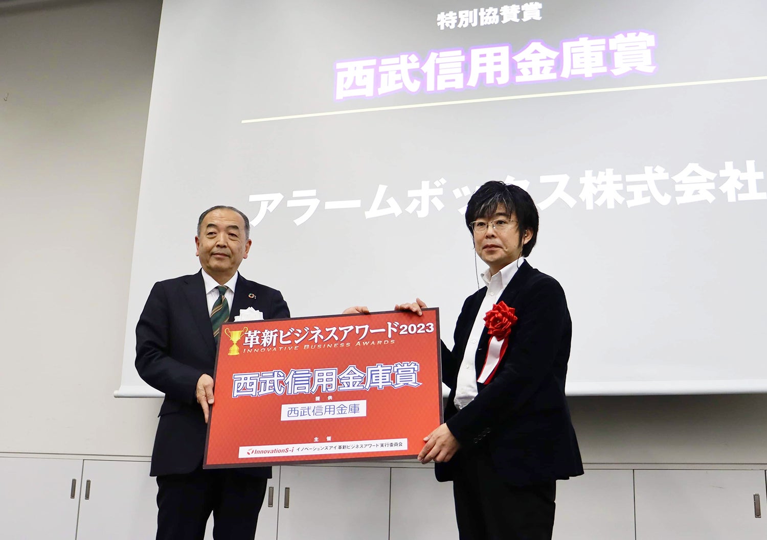 AI与信管理クラウド提供のアラームボックス、革新ビジネスアワード2023で西武信用金庫賞を受賞