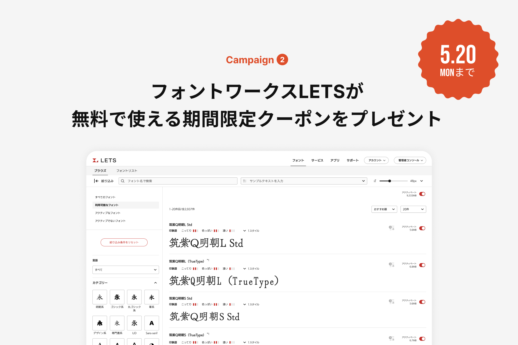 キャンペーン2: 「フォントワークスLETS」体験キャンペーン
