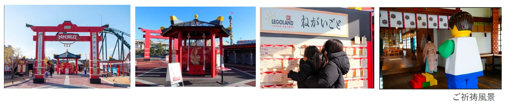 「ハッピーニューイヤー 2025」では、こどもたちの“あそびはじめ”として、「日本のお正月」を体験できる「レゴランドⓇ de 初詣」を開催。しめ縄が取り付けられた大鳥居をくぐって鈴緒を引くことで、子どもたちの初詣が行えます。