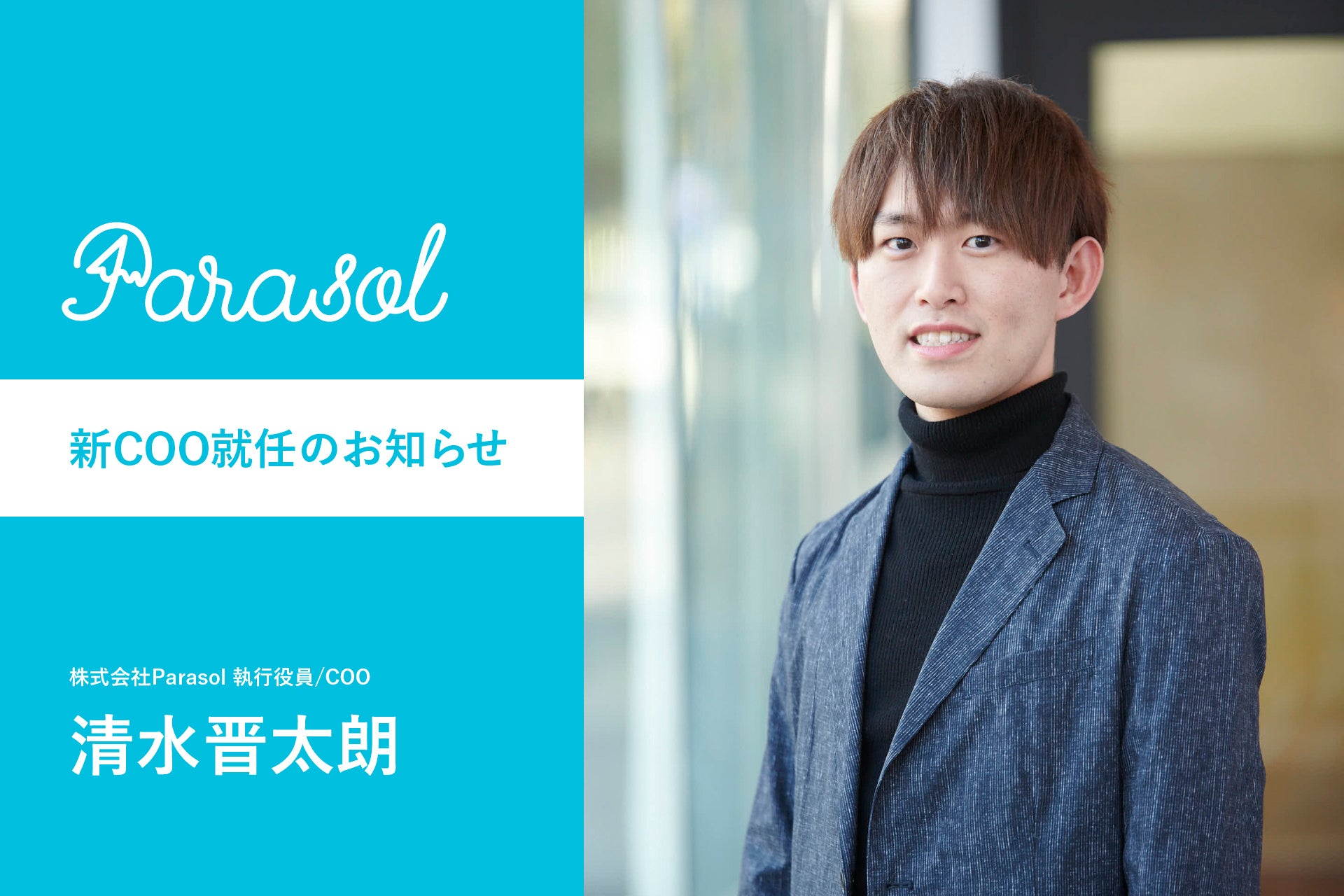 この度、2024年3月1日付で株式会社Parasolの執行役員COOに就任しました清水晋太朗です。私は大学3年生の時に「ヒトオシ」を立ち上げ、卒業後も自らの手で事業を成長させていきたいという想いから、Parasolに「新卒第1号」社員として入社しました。