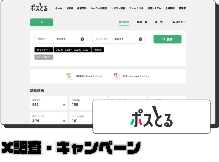 ハッシュタグやリポストキャンペーンの集計・SNSマーケティング・自社サービスや同業他社サービスの調査・ハッシュタグ選定・インフルエンサー検索などの用途でご利用いただけます。