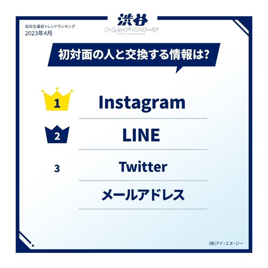 「Instagram」が1位を獲得。約9割の高校生が選ぶ結果となりました。投稿内容から会話のきっかけを得るだけでなく、人となりを知ることの出来ることから重宝されています。また、Instagramのダイレクトメッセージ機能や、通話機能を用いて連絡を取り、ある程度親しくなってからLINEを交換するのが高校生の間で主流となっているようです。