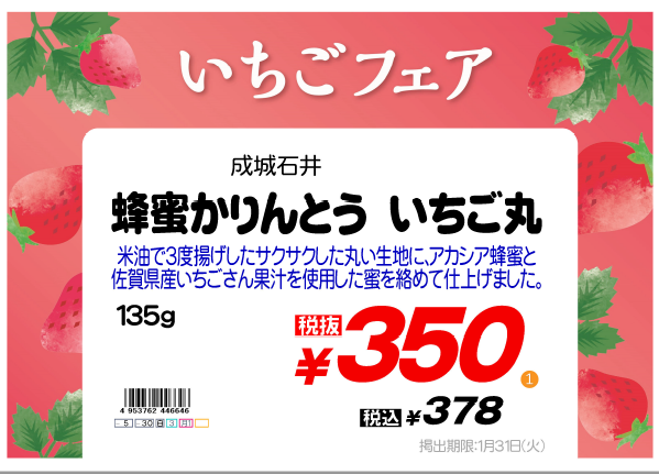 成城石井 蜂蜜かりんとう いちご丸 135g 378円