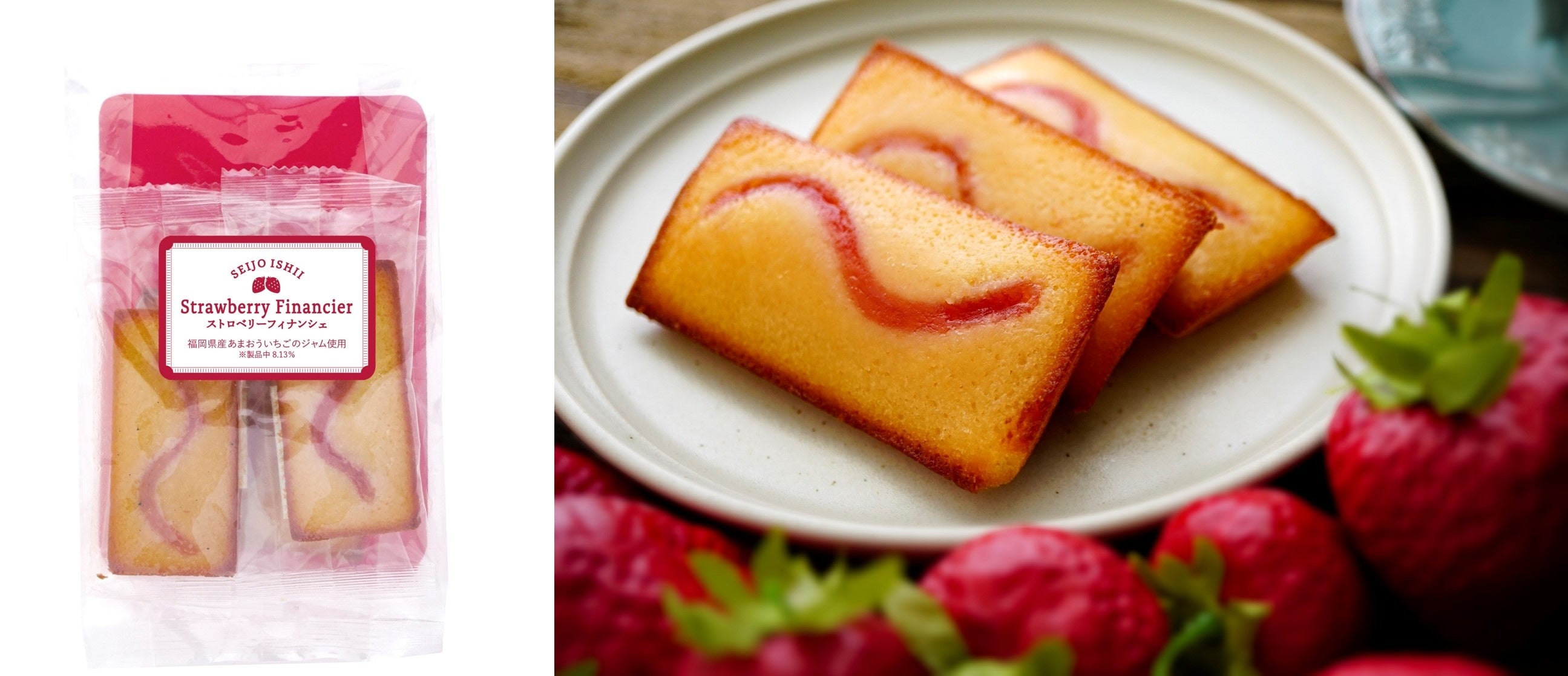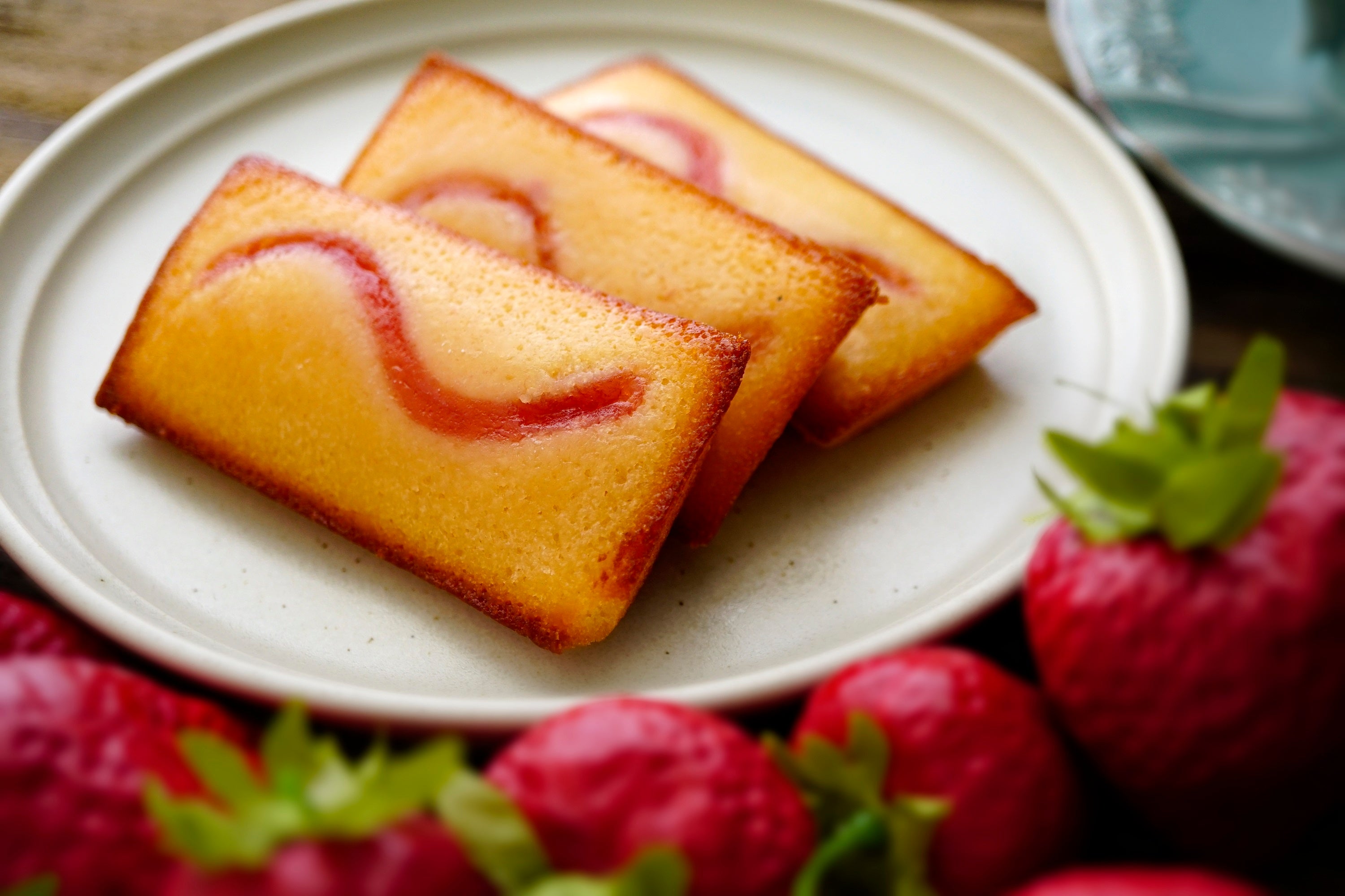 濃厚な甘みが特長の「あまおう」をいちごジャムにして使用。いちご本来の香りを存分にお楽しみいただくために、「あまおう」のジャムを乗せるだけではなく、フィナンシェにも「あまおう」のソースを贅沢に練り込みました。アーモンドの風味が豊かで上品な甘みのフィナンシェに「あまおう」の甘酸っぱい味わいが引き立ちます。トースターで少し温めていただくと、バターの風味が増し、よりおいしくお召し上がりいただけます。