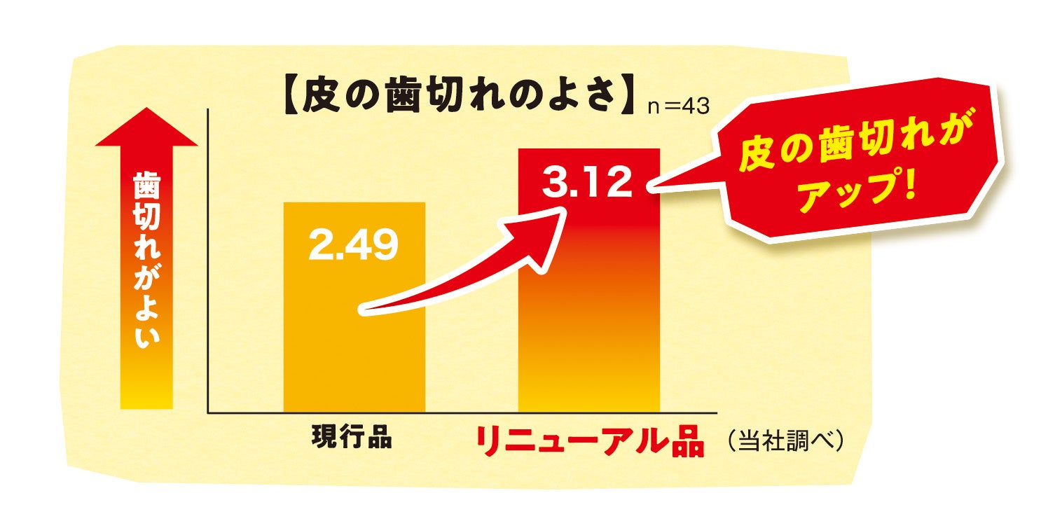 2.<レンジでギョーザ>は、皮の歯切れがアップ!さらなる満足度向上へ