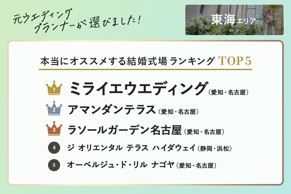 元ウエディングプランナーが選ぶ「本当にオススメする結婚式場ランキング<東海版>」を発表!愛知勢が上位を占める中、あの県がTOP5にランクイン!