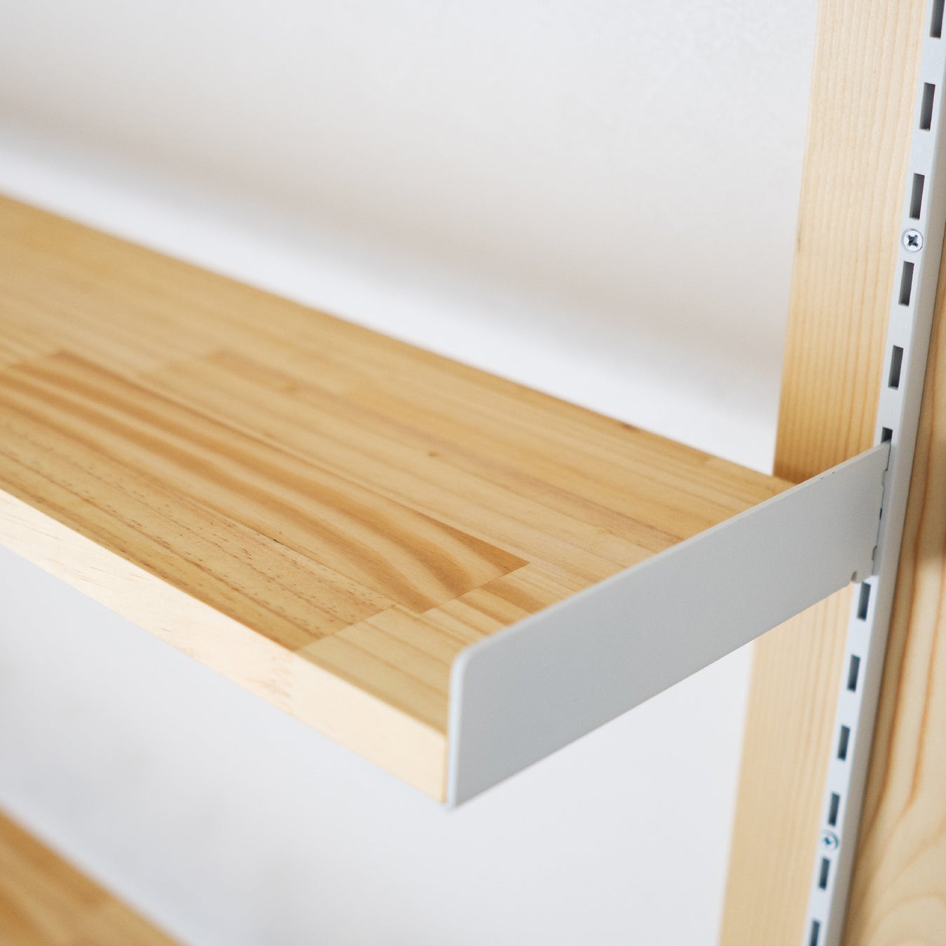 本製品は、棚幅を50cmから110cmの間で細かいピッチでサイズオーダーできるため、取り付けたい場所にぴったりの棚を実現します。また、高さは60cmと90cmの2種類、奥行は89mm、178mm、267mmの3種類から選べ、木材カラーも6種類ご用意。ベーシックなカラーからお部屋のアクセントになるカラフルなカラーまで幅広くラインナップしています。