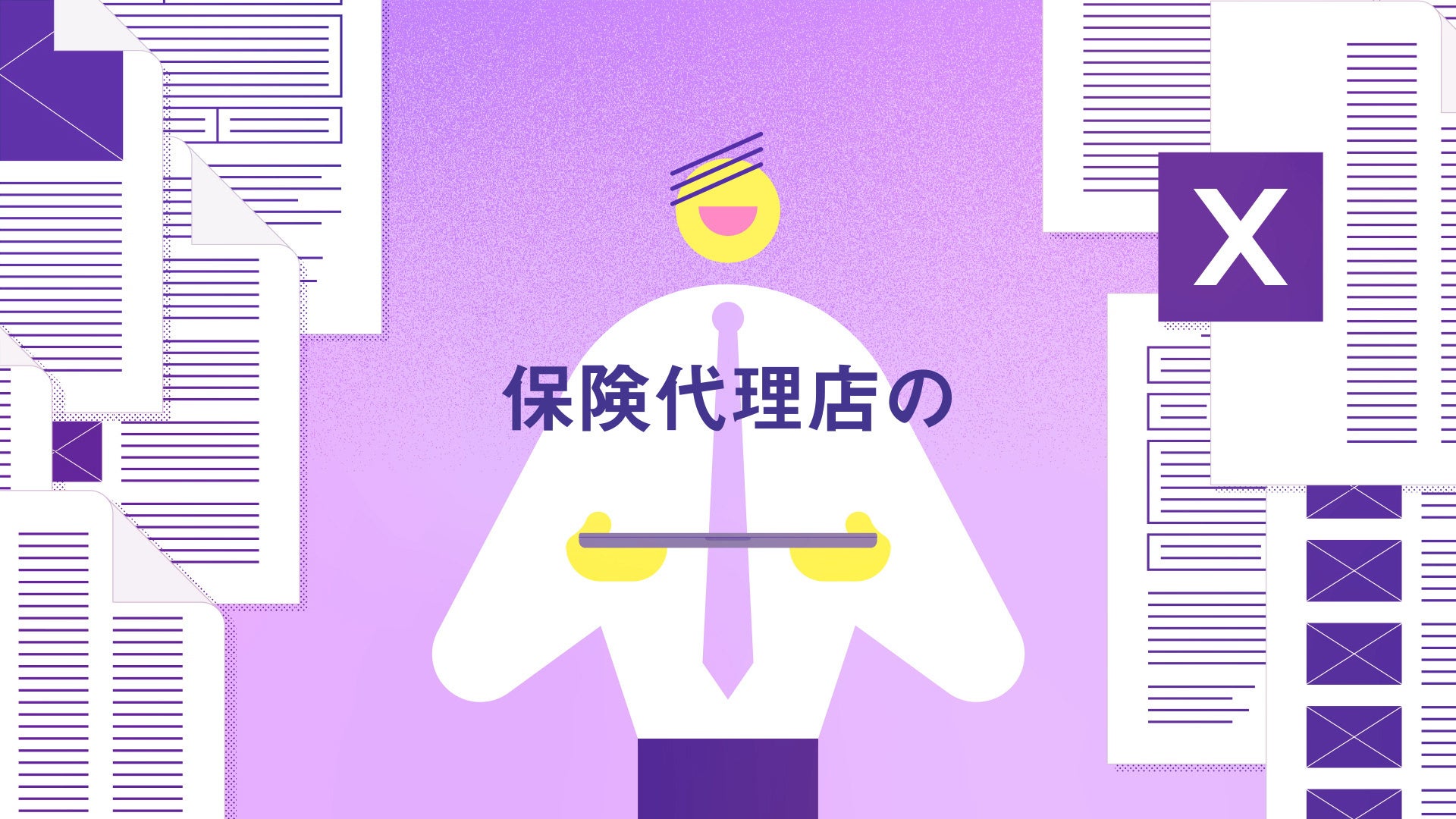 パソコンを持った保険募集人が登場し、これまで使っていた表計算ソフトや紙の資料が現れます。