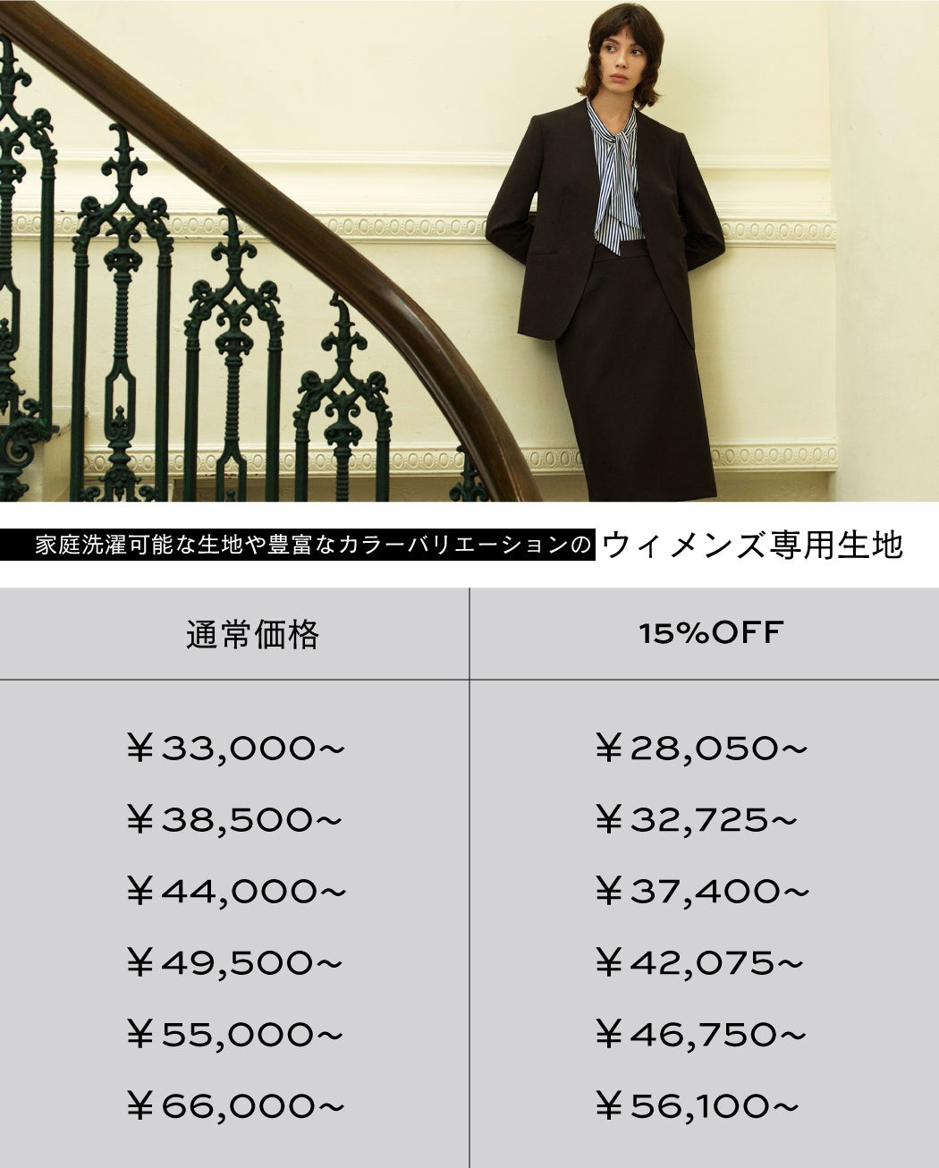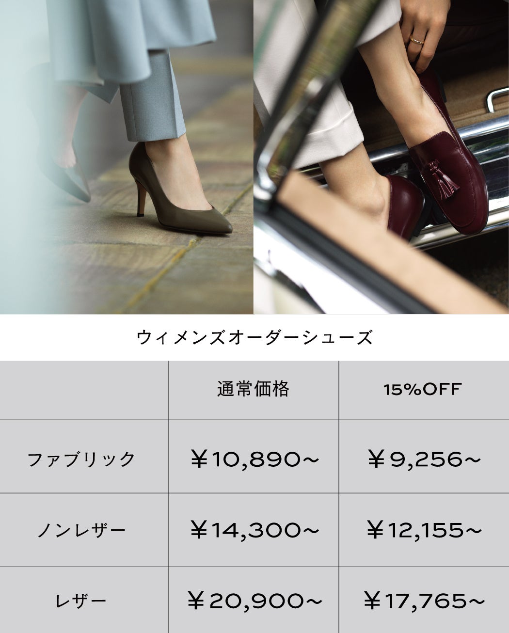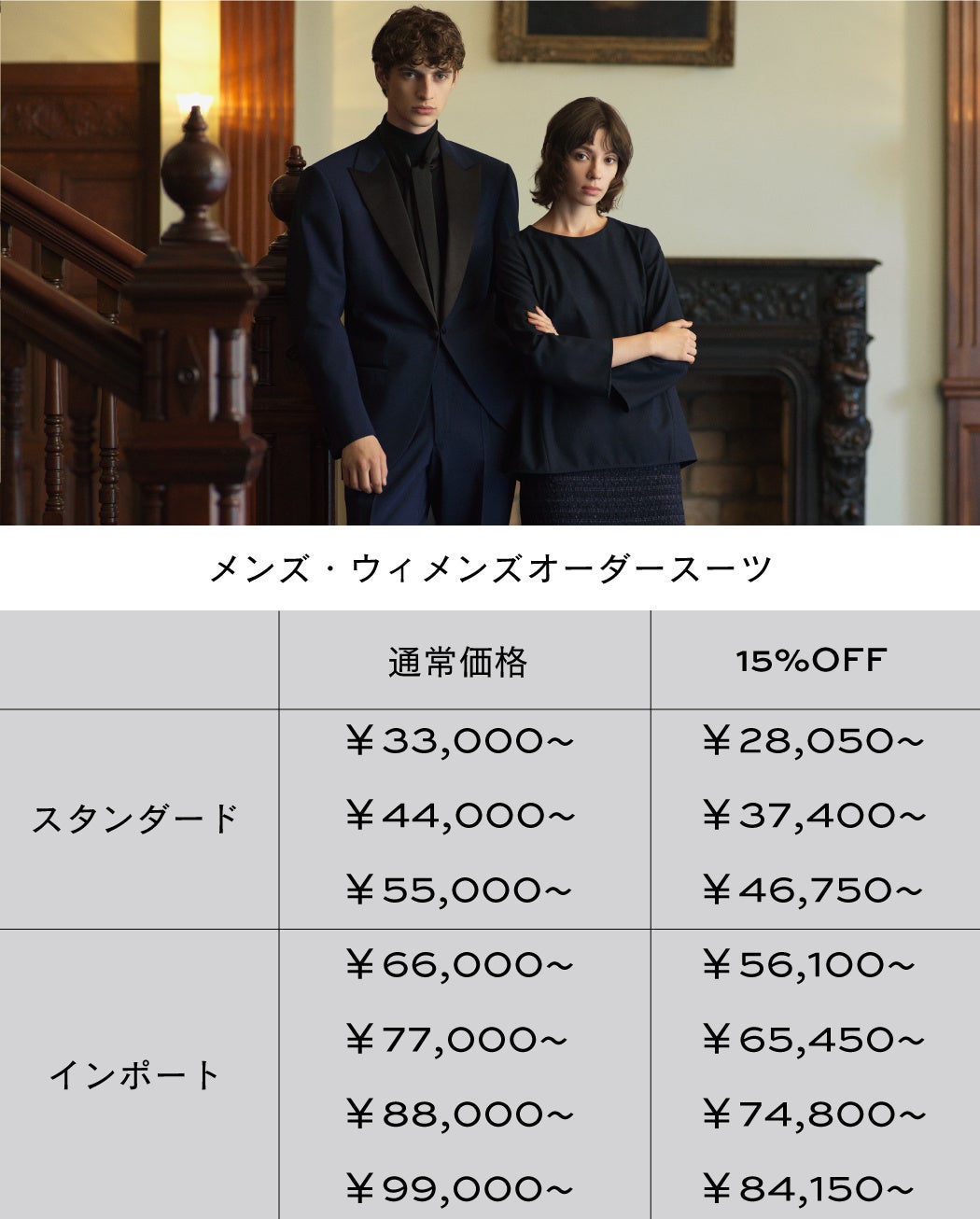 “オーダーメイドをもっと身近に。”オーダーメイドスーツ・ウィメンズオーダーメイドシューズが初回購入限定15%OFF。最短1週間でお届け!