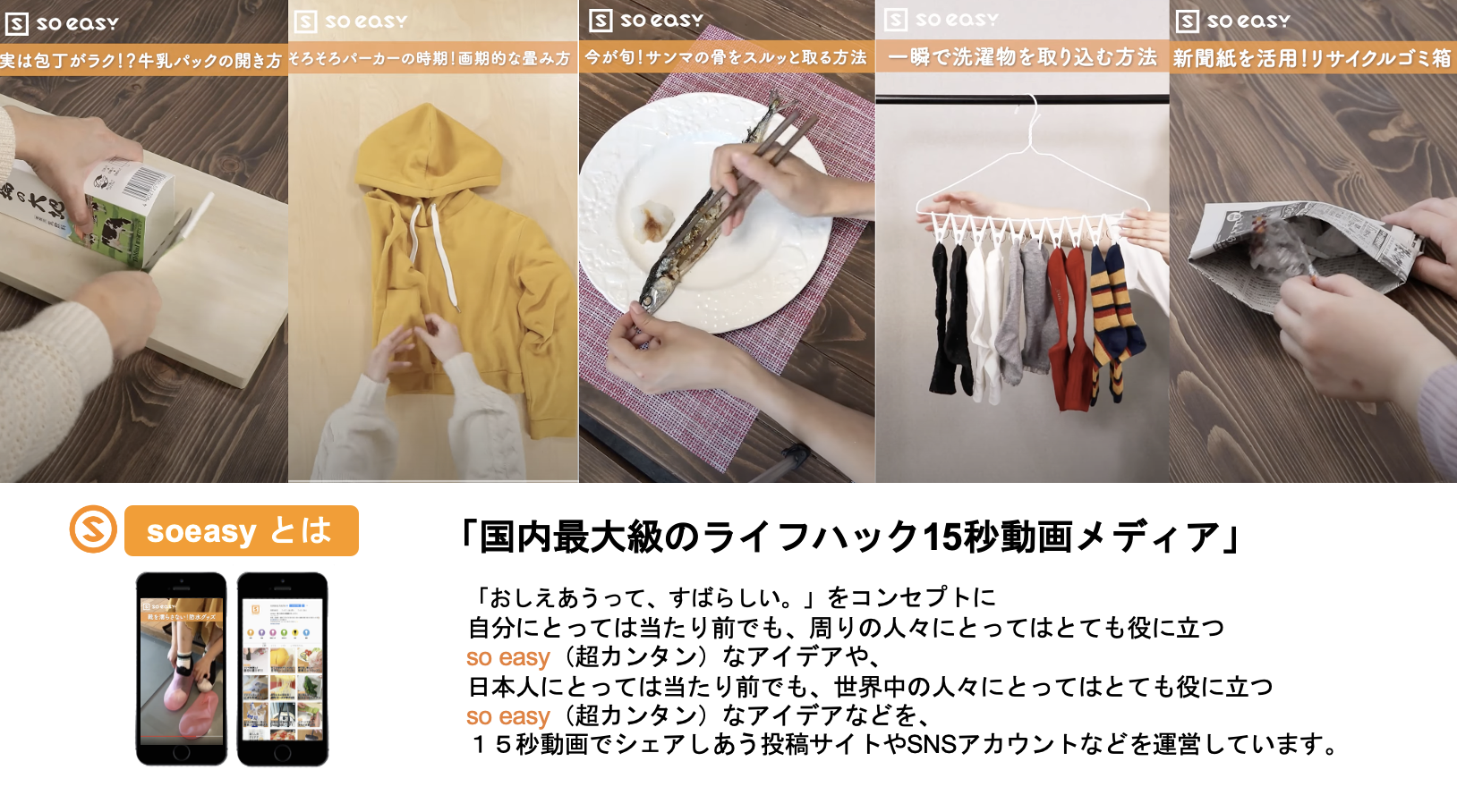 お役立ち15秒動画SNSメディア『soeasy』https://soeasy.tokyo/