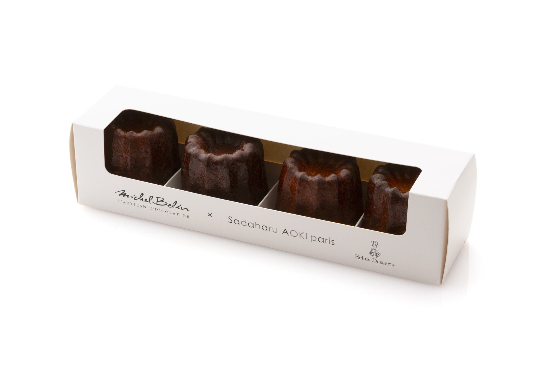 フランスの菓子職人の団体である「ルレ・デセール」の創始者の一人ミッシェル・ブランと、日本人パティシエとしては唯一ルレ・デセールフランス本部会員の青木定治。2人のトップシェフによるコラボレーションボックスが今年も登場。フランスで長く愛され続けている 「カヌレ」をそれぞれのシェフがモダンにアレンジ。ミッシェル・ブランからは「プラリネ」「ショコラ」を、サダハルアオキからは「ホウジチャ」「ナチュール」の計4種類のカヌレがお楽しみいただける夢のようなボックスです。