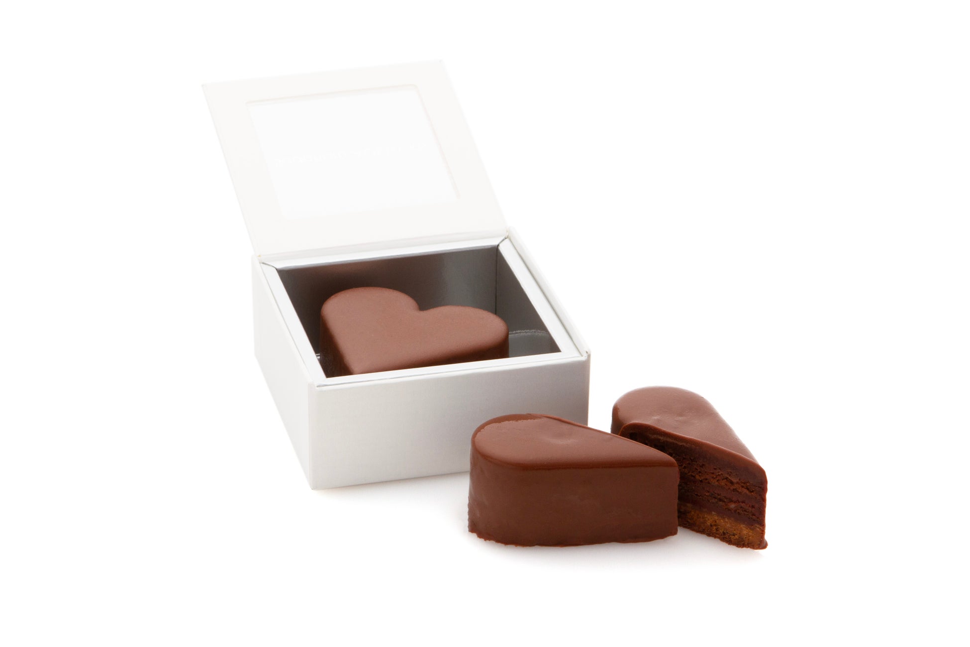 ビスキュイショコラに、ナッツの香ばしさやサクサクとした軽い食感が楽しめるプラリネとほんのり酸味の効いたフランボワーズのガナッシュを重ね、イタリア「ドモリ社」のミルクチョコレートでコーティング。 ショコラの甘さとフランボワーズの酸味が溶け合う大切な人への贈り物にぴったりのハート形のキュートなガトーショコラ。