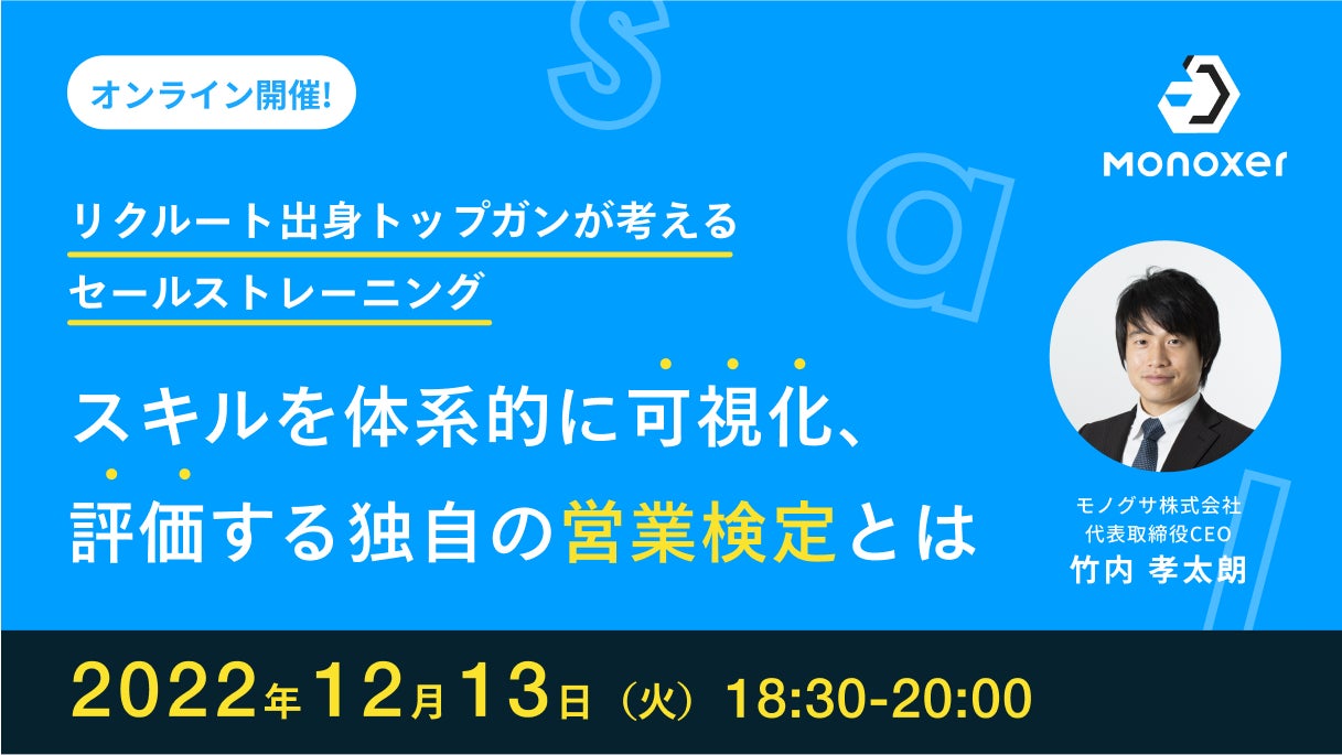 WEBセミナー『リクルート出身トップガンが考えるセールストレーニング』開催決定【12月13日(火)18:30~】